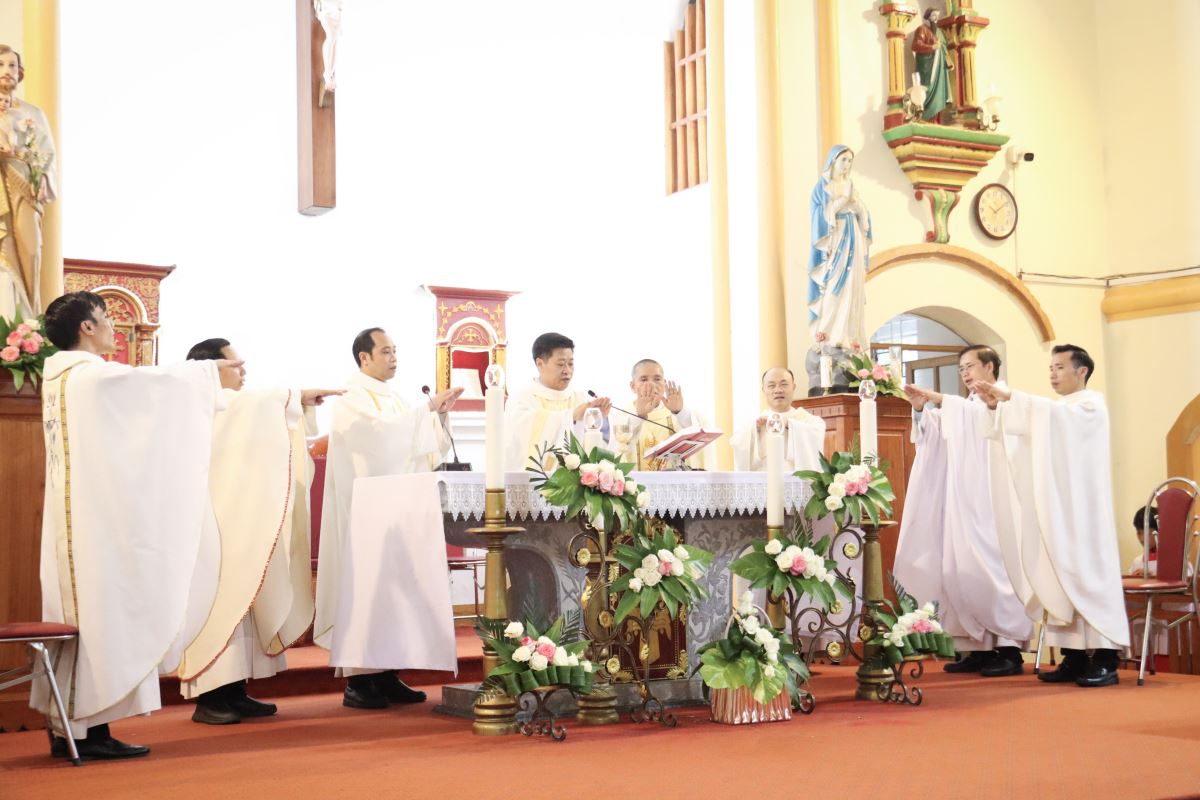 Phaolô Nguyễn Quốc Anh chủ tế, cùng đồng tế có quý Cha trong phiên trực.