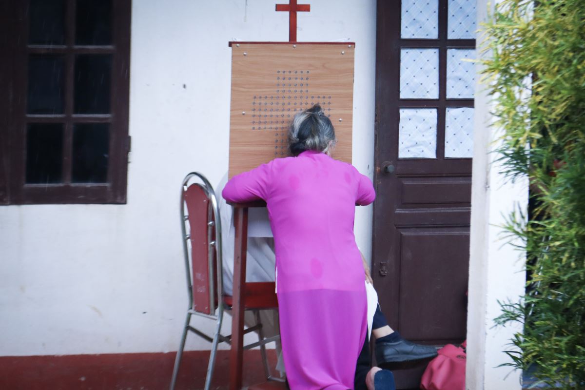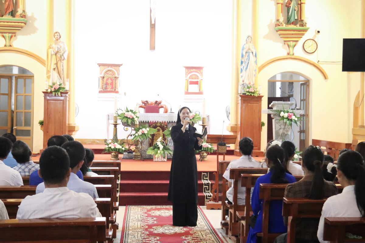 Tại đây, quý Dì Dòng Mến Thánh Giá hướng dẫn cộng đoàn bước vào giờ tĩnh tâm và xét mình, giúp mỗi người nhìn lại đời sống Đức tin để sẵn sàng sám hối và lãnh nhận ơn toàn xá.