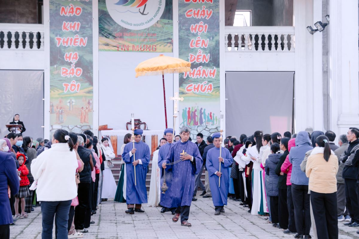 Đoàn hành hương tiến vào Nhà thờ |