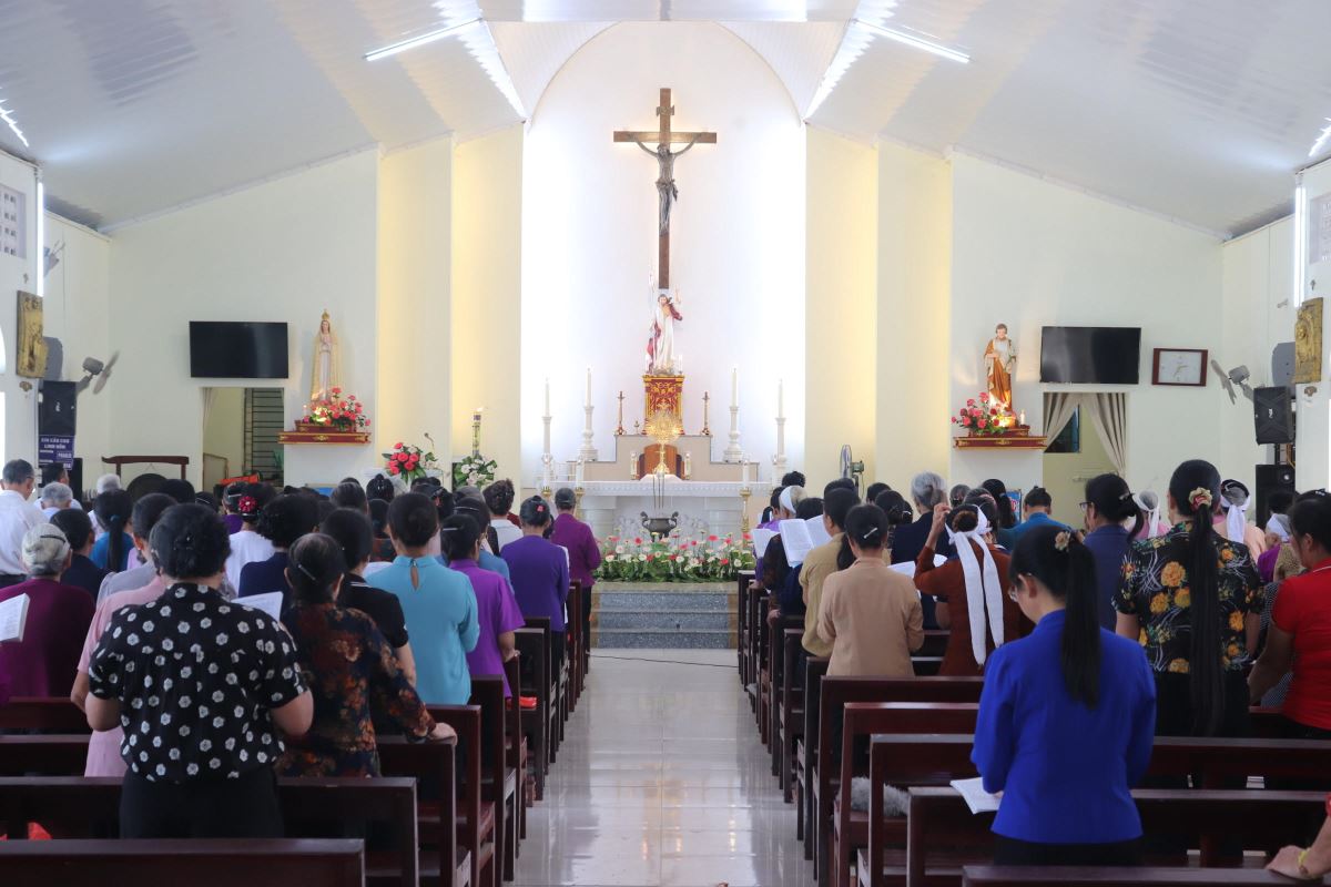 Trong ngày chầu lượt của chuẩn xứ Minh Xuân còn có chuẩn xứ Ba Đông, chuẩn xứ Tiền Phong, giáo họ Hoàng Xá, giáo họ Trung Tâm (thuộc giáo xứ Hoàng Xá) cùng đến chia sẻ niềm vui và hiệp thông cầu nguyện qua giờ chầu Thánh Thể và tham dự Thánh lễ.