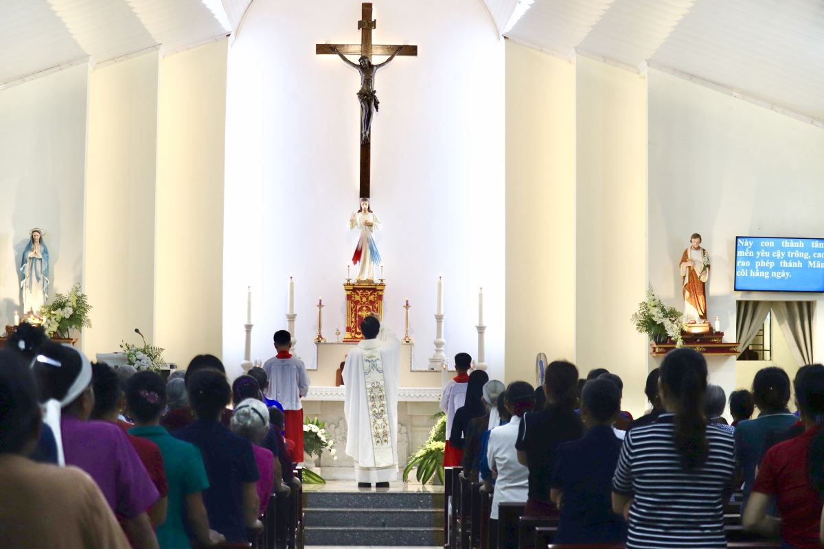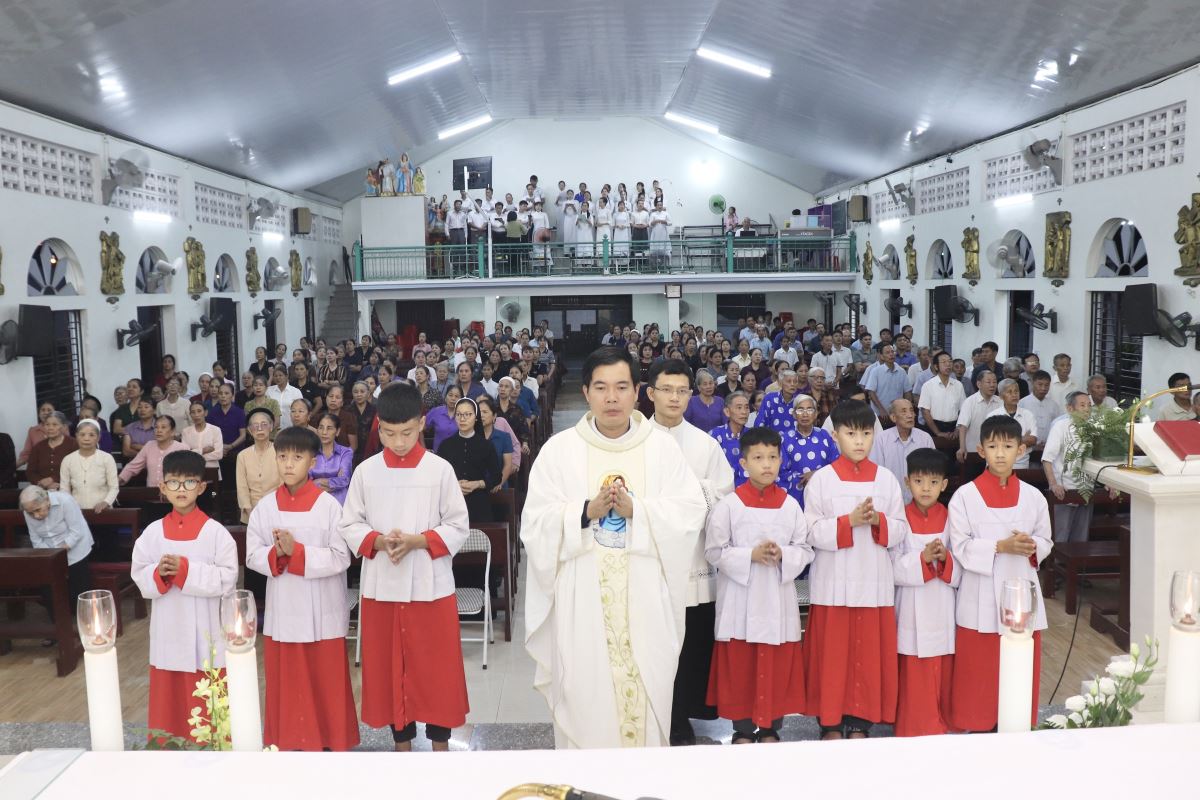 Mở đầu Thánh lễ, Cha chủ tế mời gọi cộng đoàn dâng lời tạ ơn Thiên Chúa, tôn kính Đức Mẹ Mân Côi – Quan Thầy Chuẩn xứ, và dâng lên Mẹ những tâm tình con thảo trong Tháng Mân Côi. Cha khẩn xin Đức Mẹ chở che, gìn giữ mọi người luôn biết chạy đến với Mẹ trong lời kinh Mân Côi mỗi ngày, để được thêm ơn bình an giữa những biến cố của cuộc sống.