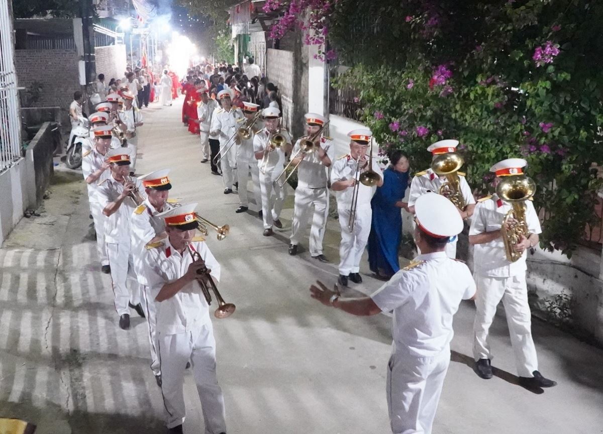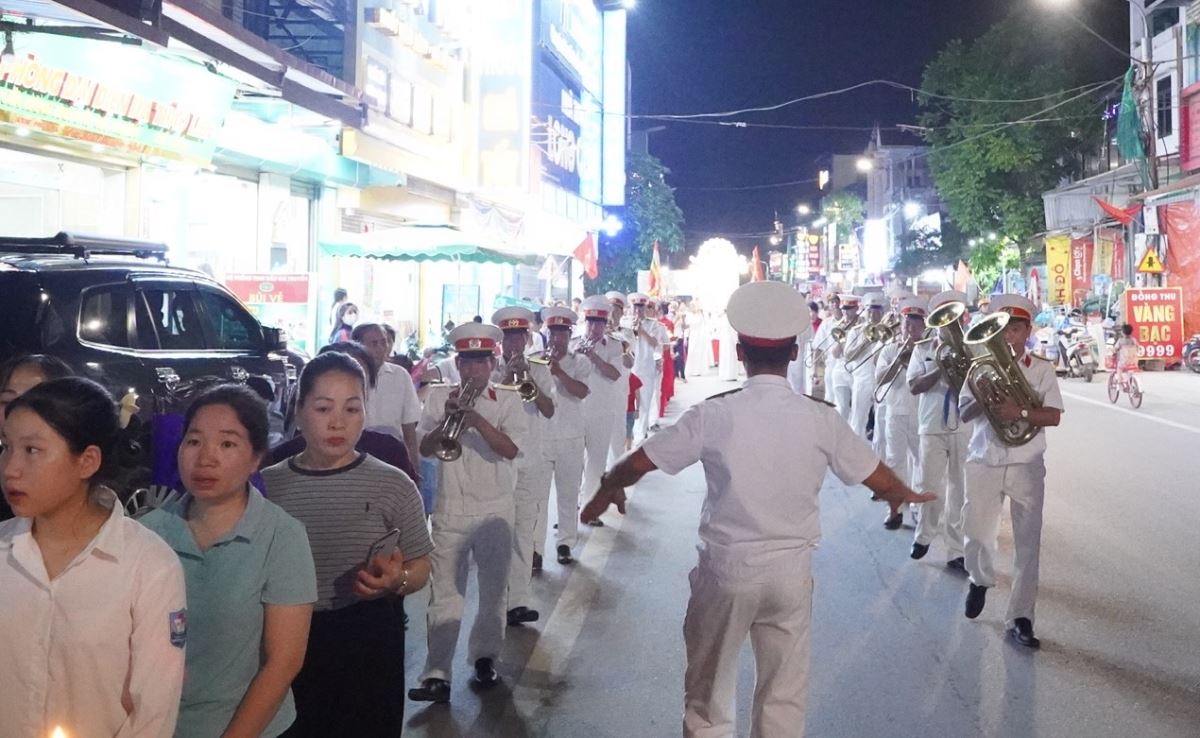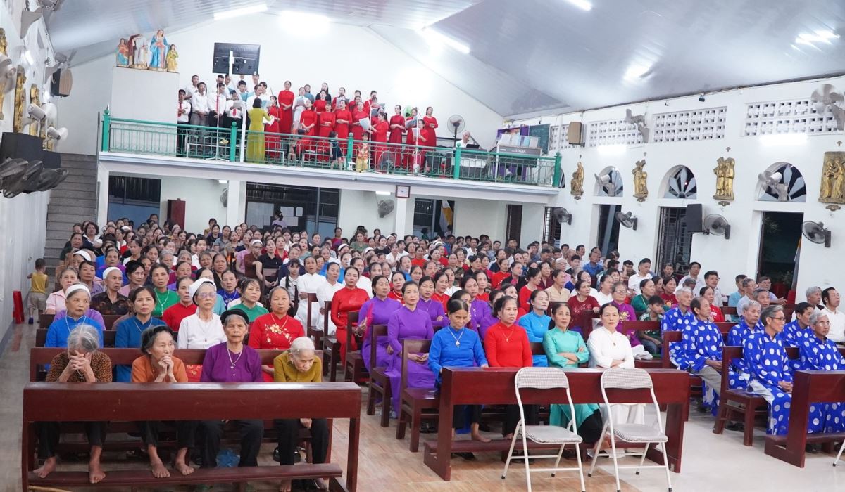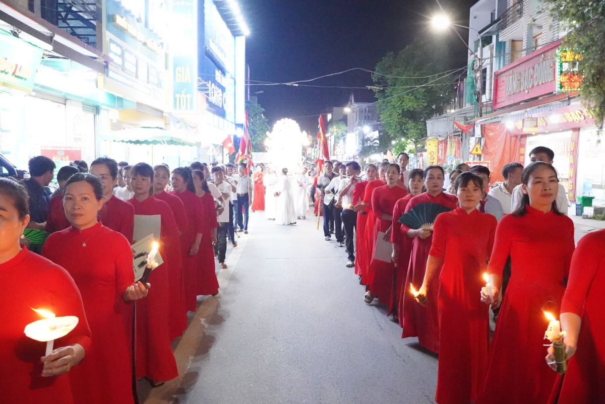 Vào lúc 19g15, thứ Ba, ngày 13.5.2025 các hội đoàn và mọi thành phần dân Chúa tập trung trước kiệu Đức Mẹ để chuẩn bị cho cuộc rước. Trước tiên, cộng đoàn sốt sắng nguyện kinh xin ơn Chúa Thánh Thần, tiếp đến cuộc cung nghinh kiệu Đức Mẹ được khởi hành từ Xóm Bến, qua nhiều ngõ xóm rồi ra đường lớn đi về nhà thờ chuẩn xứ.