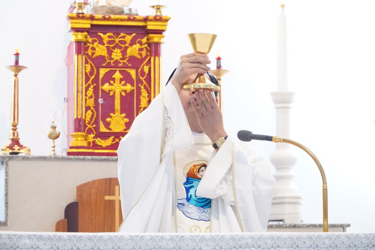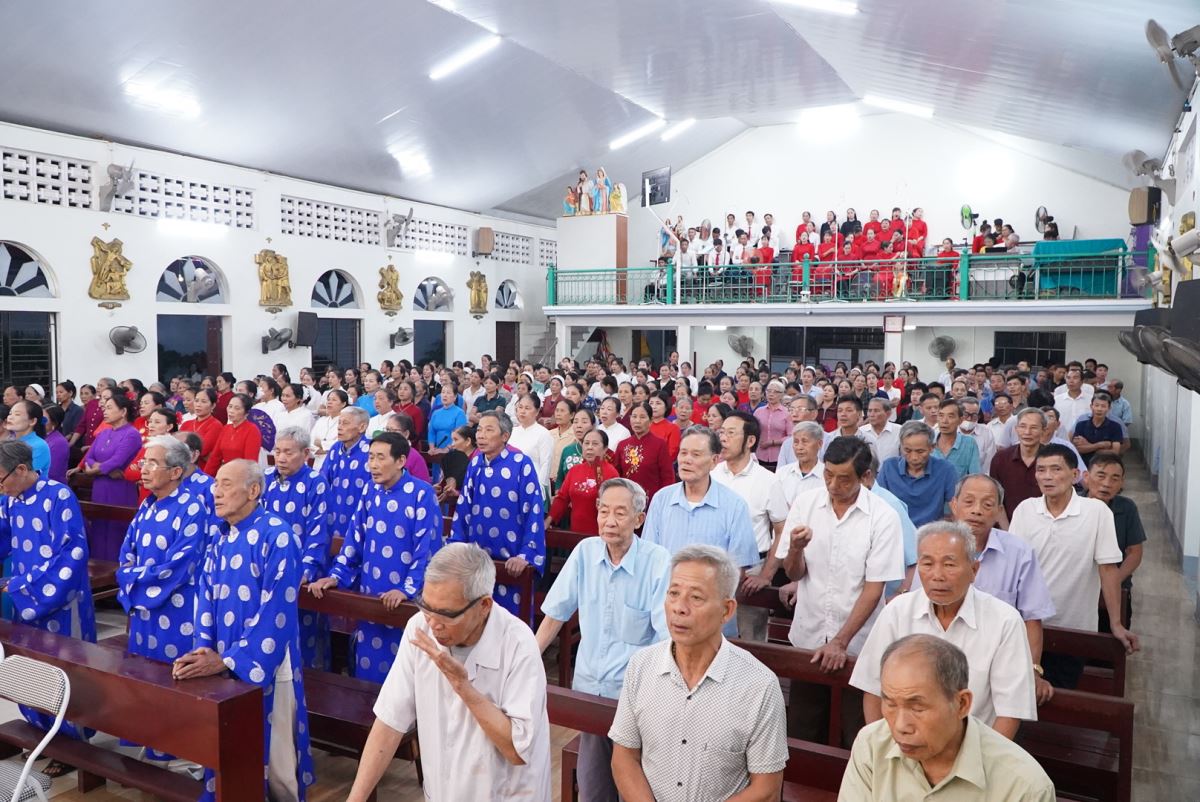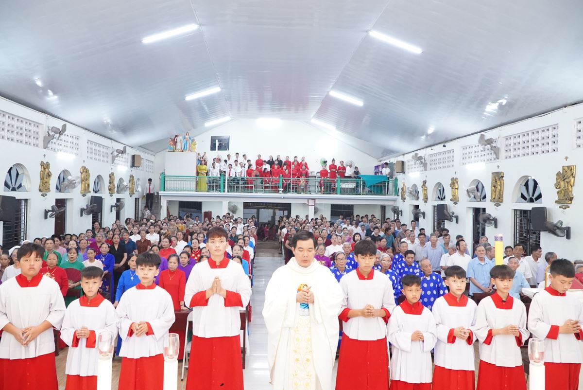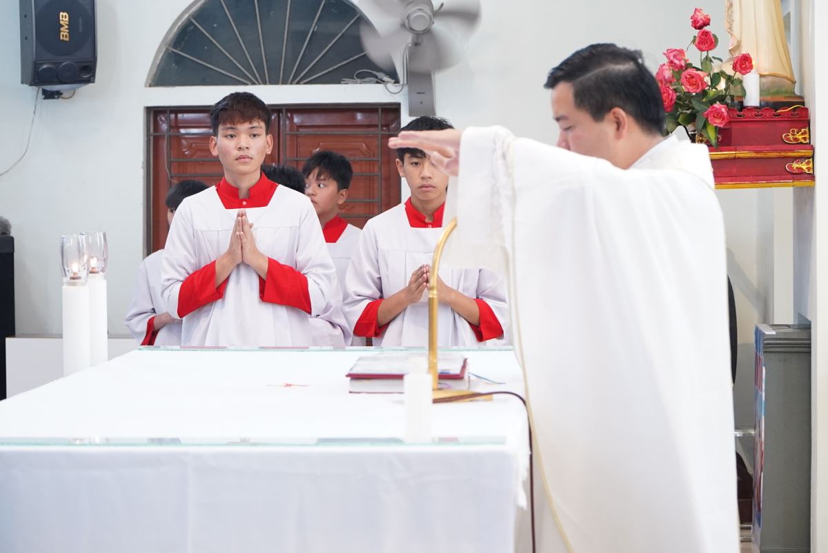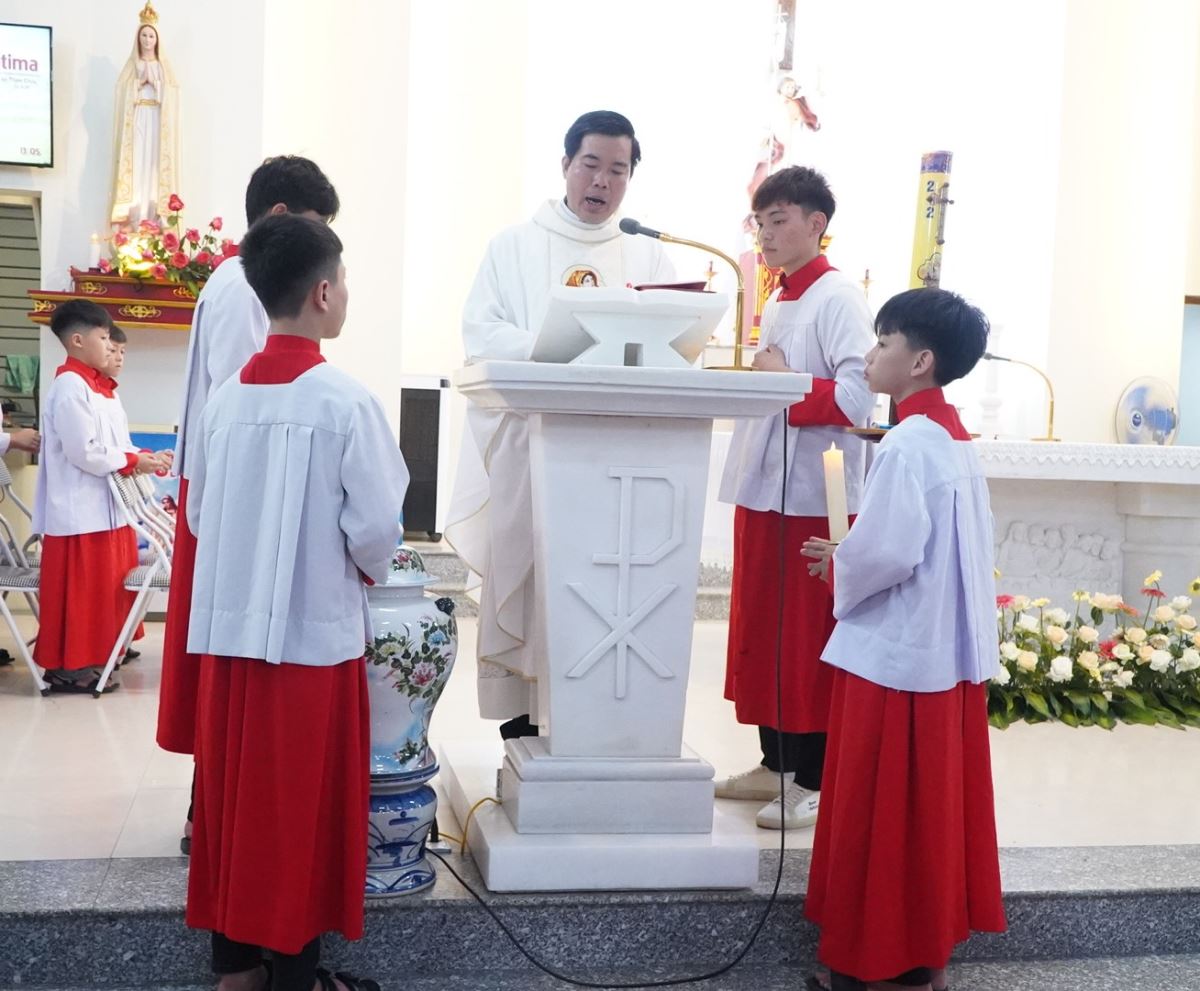Thánh Lễ kính Đức Mẹ Maria được bắt đầu lúc 20g00. Mở đầu thánh lễ, cha Phêrô gợi lại cho cộng đoàn biến cố Đức Mẹ hiện ra tại Fatima, Bồ Đào Nha cách đây 108 năm. Từ đó, cha mời gọi cộng đoàn hãy lắng nghe và thực thi những lời Mẹ dặn năm xưa, để cầu nguyện cho thế giới được hòa bình, và cho người tội lỗi được ơn ăn năn trở lại.