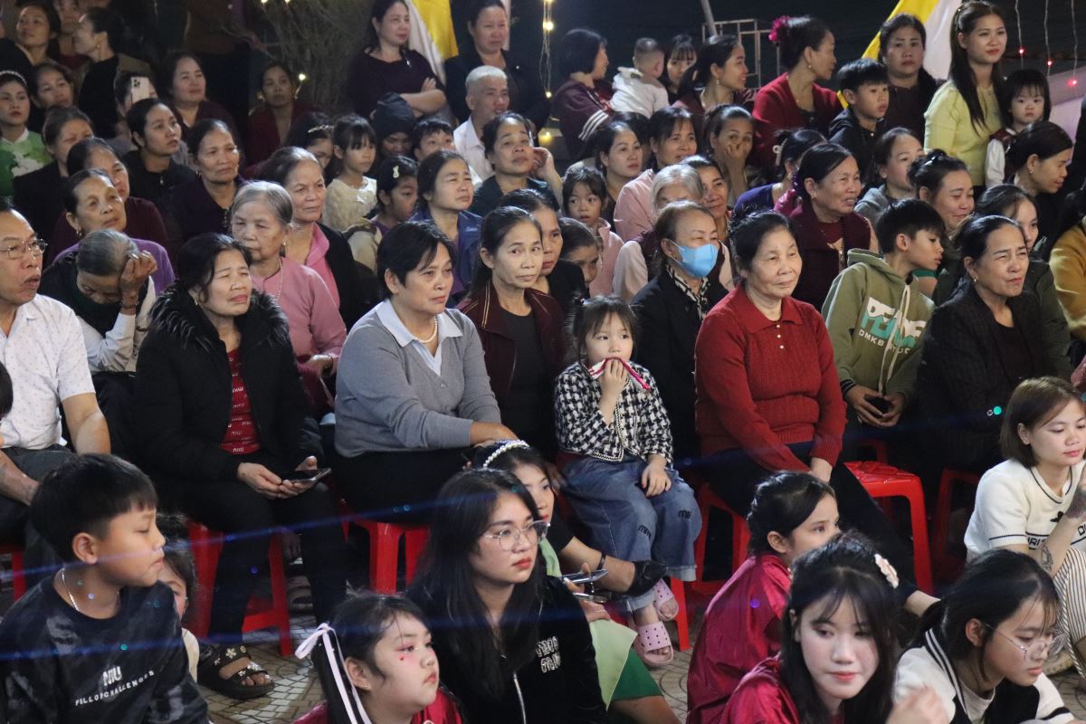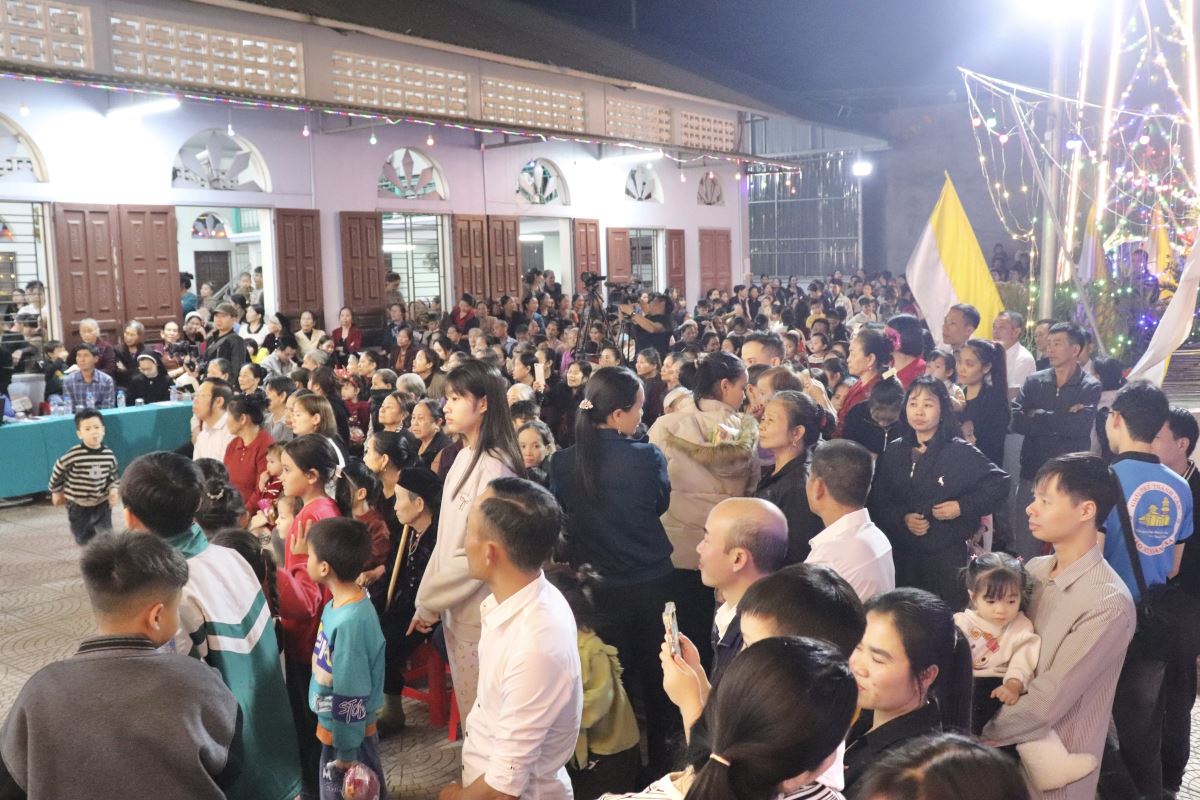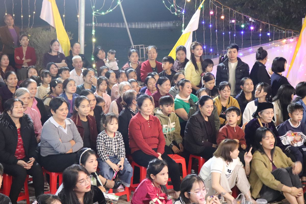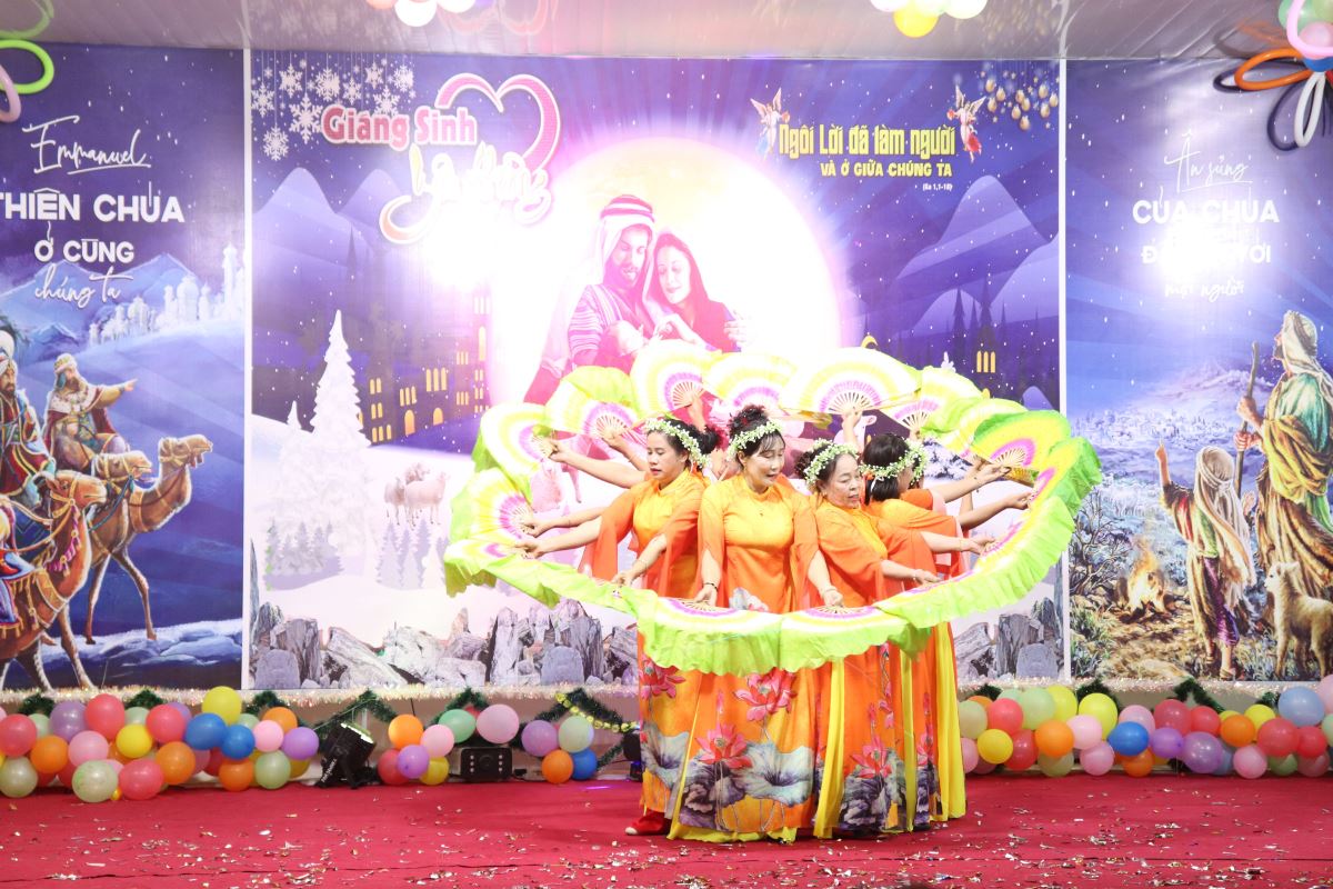 Ngay sau Thánh lễ, cha Phêrô đã long trọng khai mạc Đêm Hoan Ca mừng Chúa Giáng Sinh năm 2025 của chuẩn xứ. Trong niềm hân hoan và tràn đầy hy vọng, đêm hoan ca như lời chúc mừng Giáng Sinh sớm, quy tụ nhiều tiết mục thánh ca, vũ điệu và những giai điệu quen thuộc, diễn tả niềm vui mừng Con Thiên Chúa giáng sinh và tôn vinh tình yêu cứu độ của Thiên Chúa dành cho nhân loại.