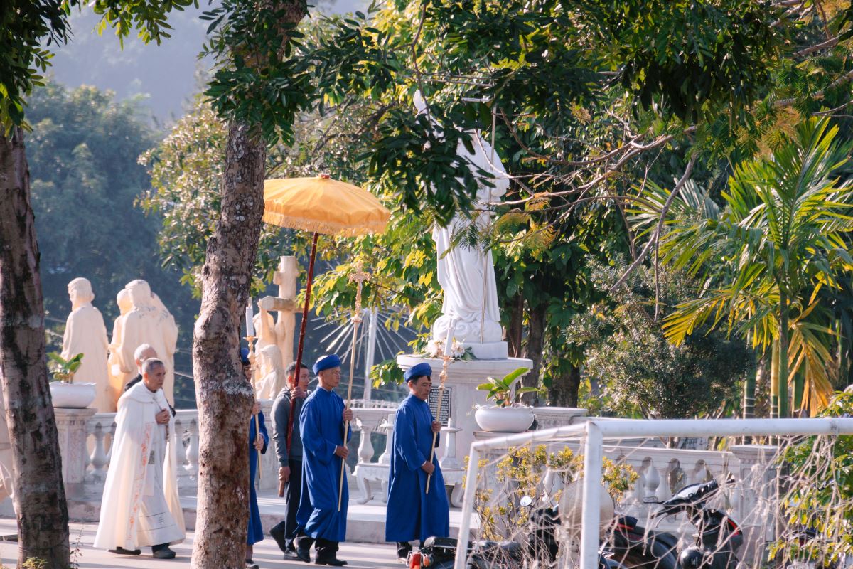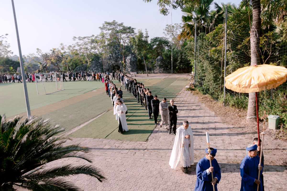 Đúng 8 giờ sáng, cộng đoàn tập trung trước sảnh nhà Giáo lý để tham dự nghi thức hành hương do Cha Giuse Lê Ngọc Nghi chủ sự.