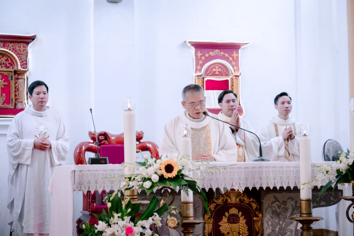 Trong bài giảng lễ, Cha Giuse Hoàng Trọng Tuấn nhắc lại rằng mọi người đều khao khát được bình an và hạnh phúc, nhưng cuộc sống với những thử thách, bão tố và đau khổ là điều không thể tránh khỏi. Cha lấy ví dụ về Chân phước Anrê Phú Yên, một chứng nhân đức tin kiên trung trong thời kỳ bách hại Công giáo tại Việt Nam, ngài đã giữ vững niềm tin dù phải chịu đựng đau khổ và tù đày. Qua đó, Cha mời gọi cộng đoàn hãy can đảm sống đức tin giữa thế gian đầy những cám dỗ và thử thách, kiên trì và tín thác vào tình thương quan phòng của Thiên Chúa.
