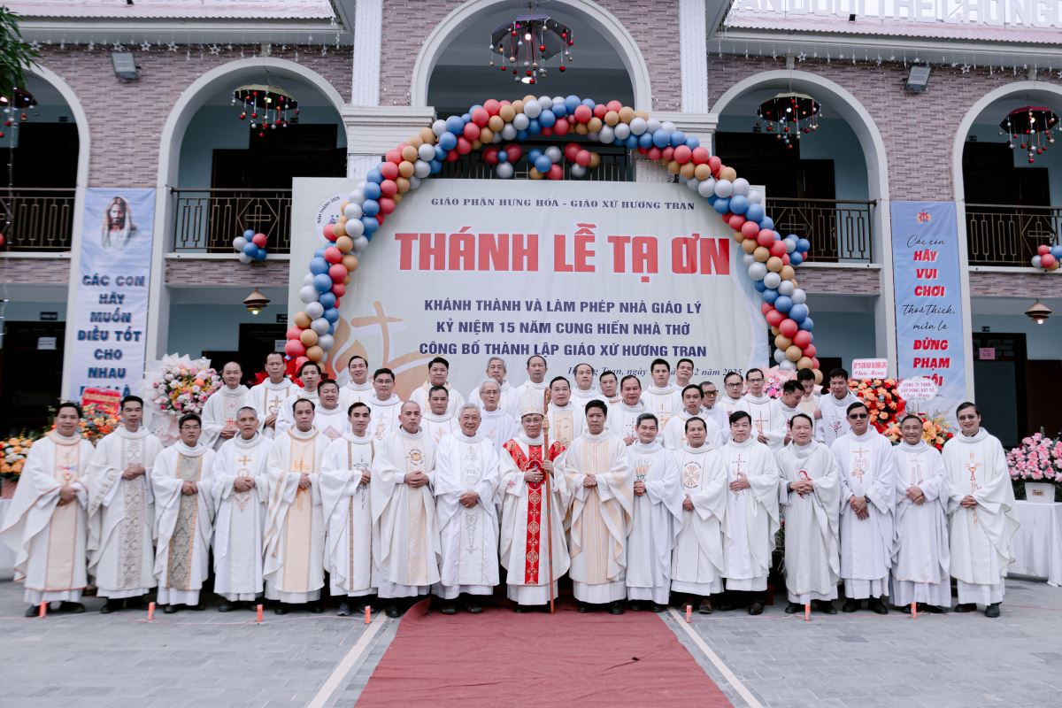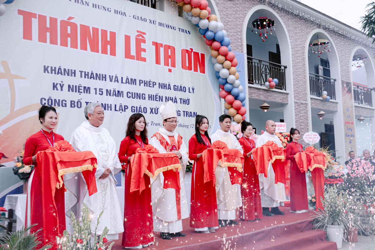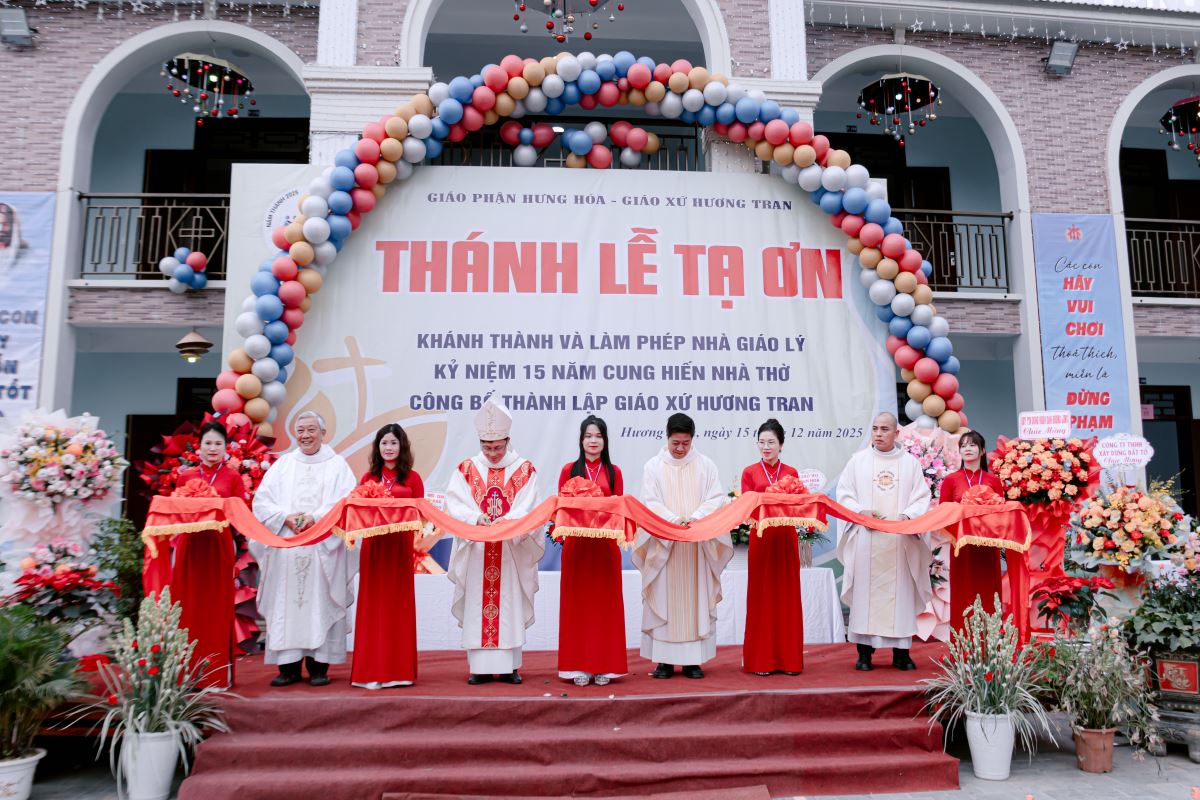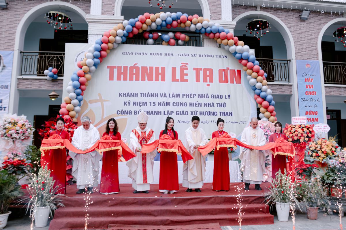 WGPHH – Trong bầu khí rộn ràng chuẩn bị đón mừng Đại lễ Giáng Sinh và tâm tình tạ ơn hồng ân Năm Thánh 2025, sáng ngày 15/12/2025, Giáo xứ Hương Tran (Giáo hạt Tây Bắc Phú Thọ, Giáo phận Hưng Hóa) đã ghi dấu một mốc son đáng nhớ trong hành trình 145 năm hình thành và phát triển. Trong niềm hân hoan và tạ ơn, hàng ngàn tín hữu đã quy tụ về Nhà thờ Giáo xứ Hương Tran để tham dự “Ngày hội lớn”, tràn ngập niềm vui với “ba niềm vui lớn”: khánh thành và làm phép Nhà Giáo lý, công bố Quyết định nâng lên Giáo xứ, và kỷ niệm 15 năm Cung hiến Thánh đường.