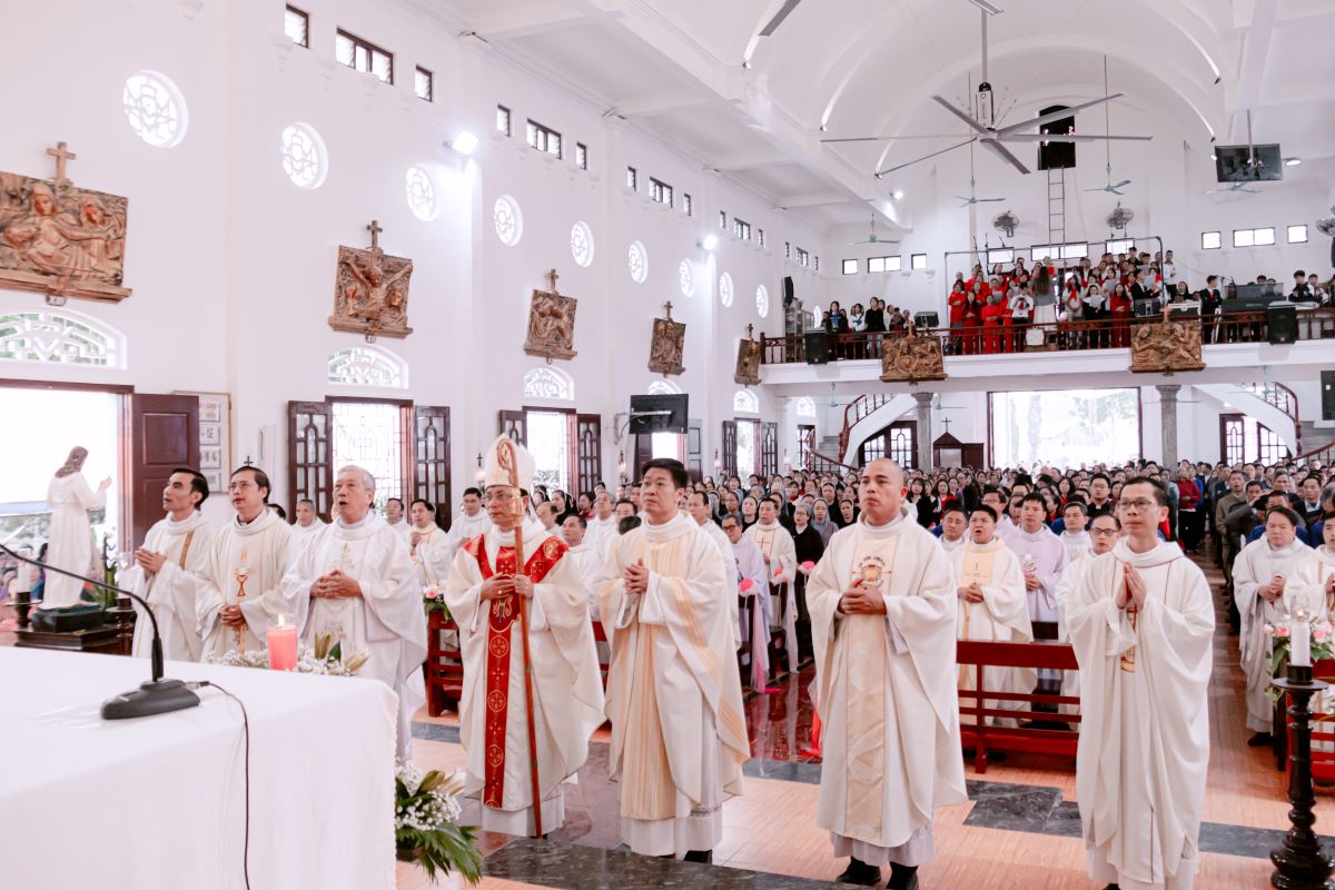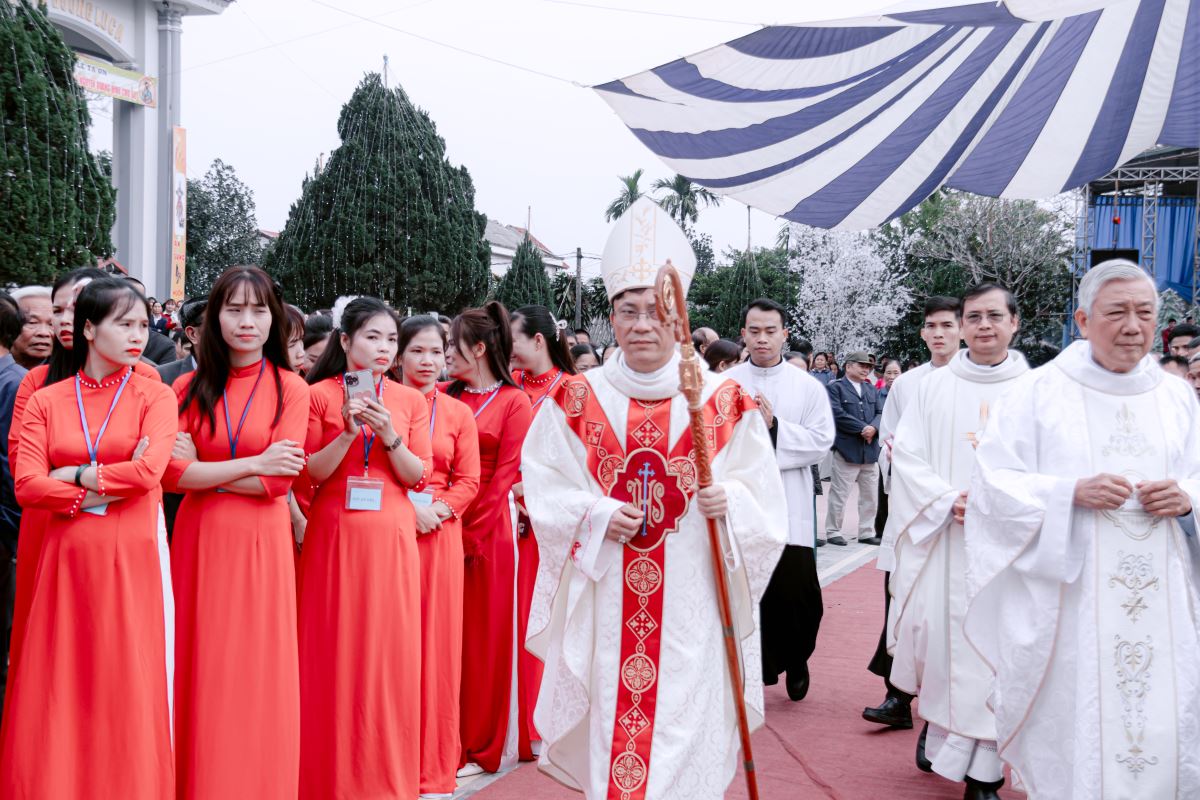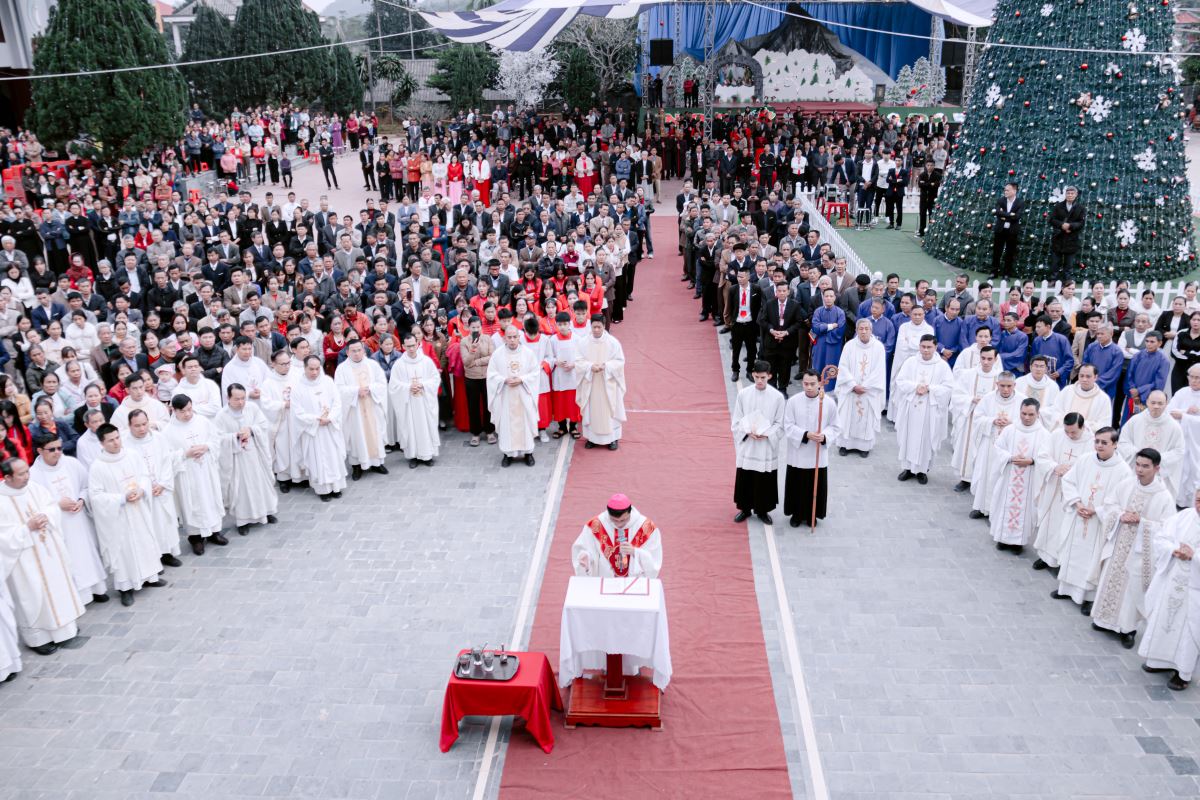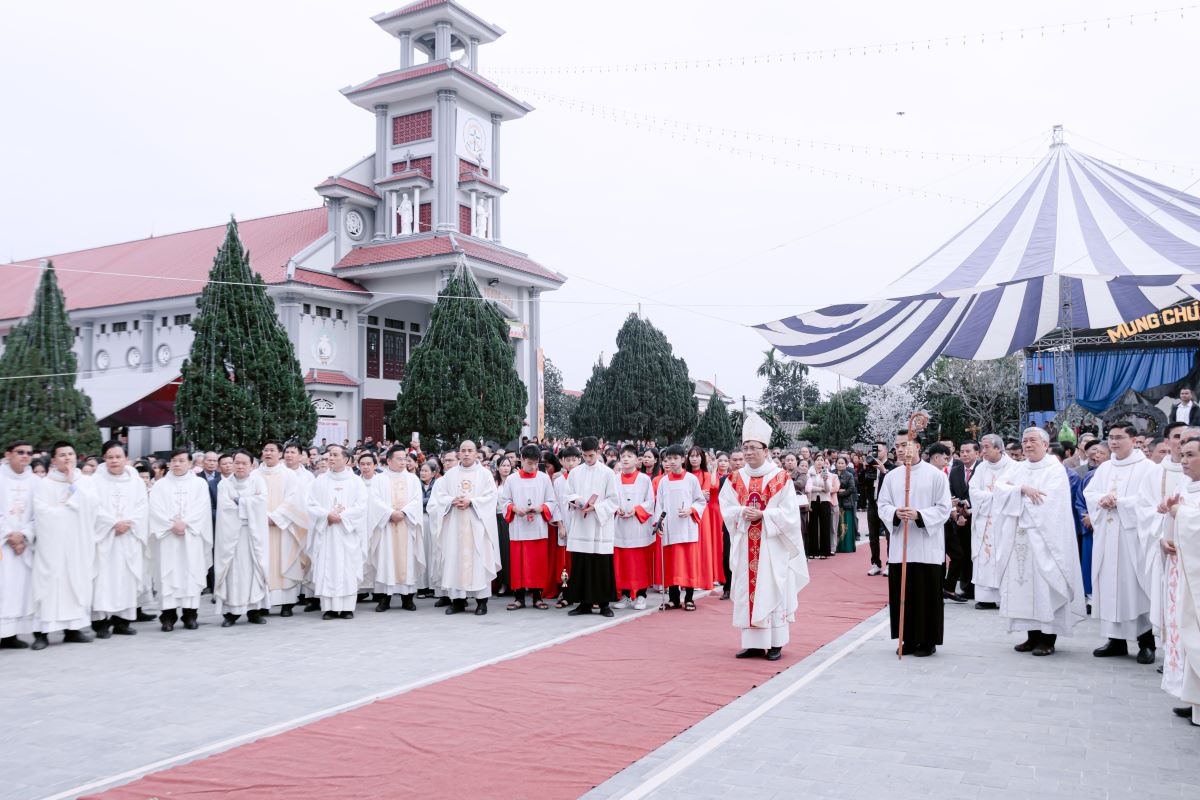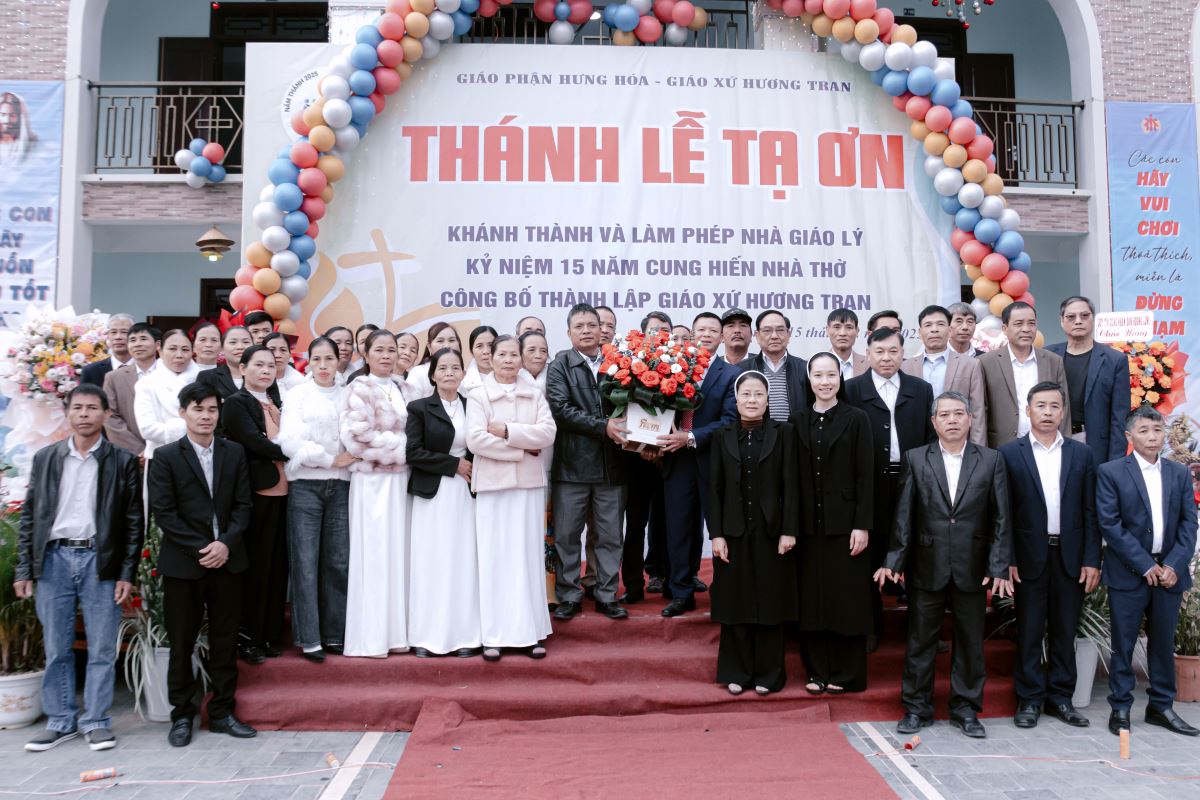 WGPHH – Trong bầu khí rộn ràng chuẩn bị đón mừng Đại lễ Giáng Sinh và tâm tình tạ ơn hồng ân Năm Thánh 2025, sáng ngày 15/12/2025, Giáo xứ Hương Tran (Giáo hạt Tây Bắc Phú Thọ, Giáo phận Hưng Hóa) đã ghi dấu một mốc son đáng nhớ trong hành trình 145 năm hình thành và phát triển. Trong niềm hân hoan và tạ ơn, hàng ngàn tín hữu đã quy tụ về Nhà thờ Giáo xứ Hương Tran để tham dự “Ngày hội lớn”, tràn ngập niềm vui với “ba niềm vui lớn”: khánh thành và làm phép Nhà Giáo lý, công bố Quyết định nâng lên Giáo xứ, và kỷ niệm 15 năm Cung hiến Thánh đường.