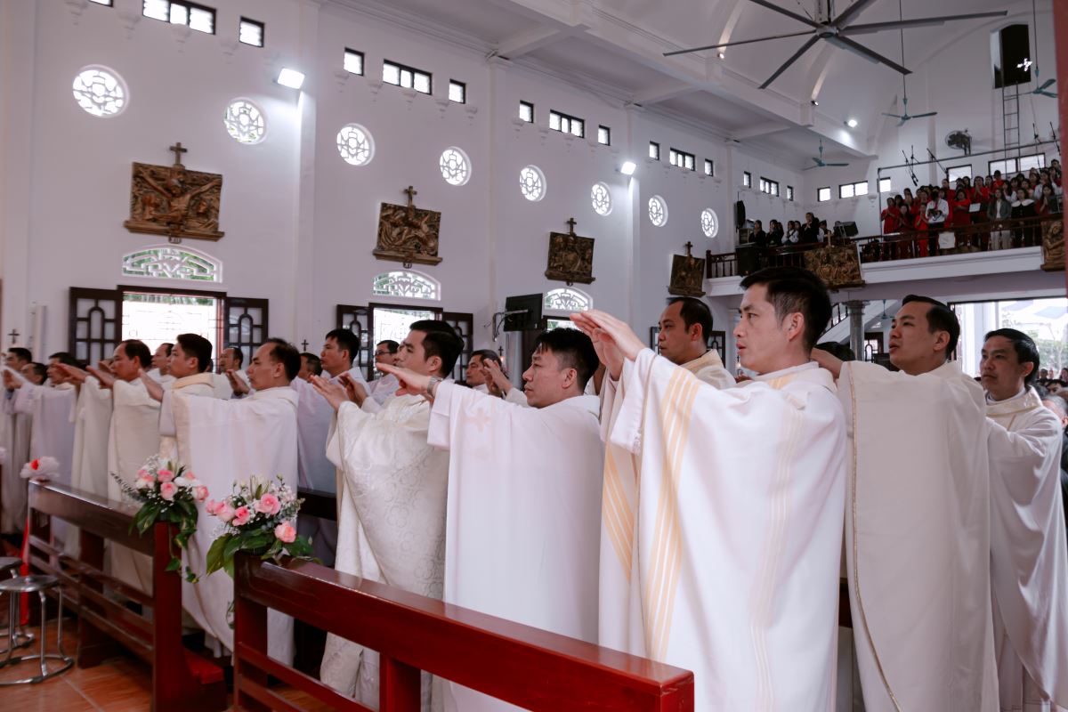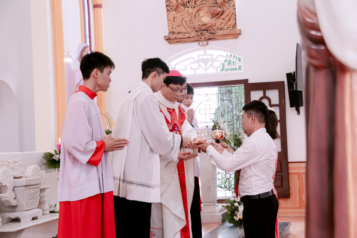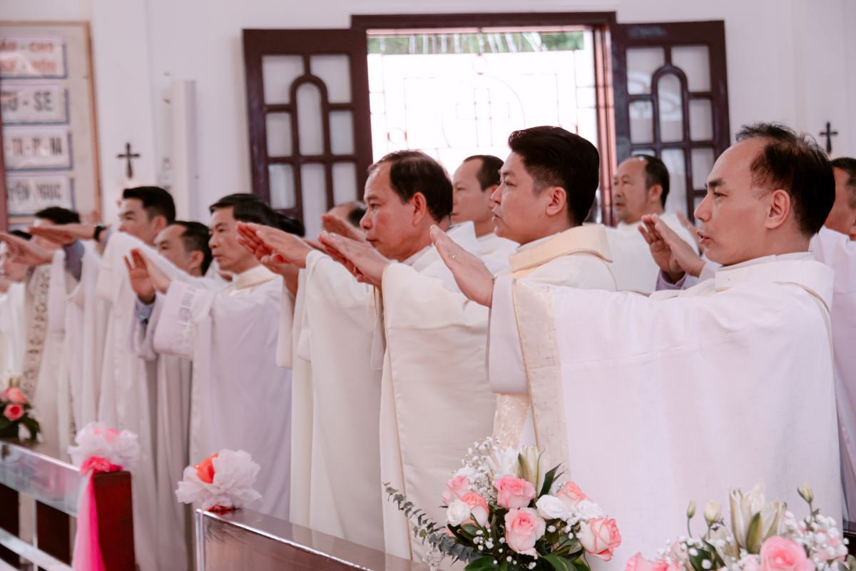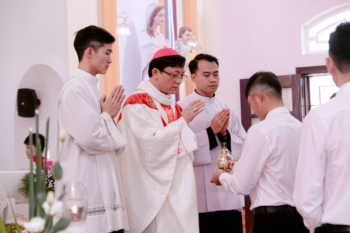 Ngay sau nghi thức cắt băng, Đức cha Phaolô Nguyễn Quang Đĩnh đã chủ sự nghi thức làm phép Nhà Giáo lý, rảy nước thánh trên công trình và dâng lời cầu nguyện xin Thiên Chúa thánh hóa nơi đây. Trong lời huấn từ, Đức cha nhấn mạnh: “Nhà Giáo lý này sẽ là môi trường ươm mầm đức tin, giúp các em thiếu nhi và người trẻ được học hỏi Lời Chúa, từng bước trưởng thành trong đời sống Kitô hữu.”