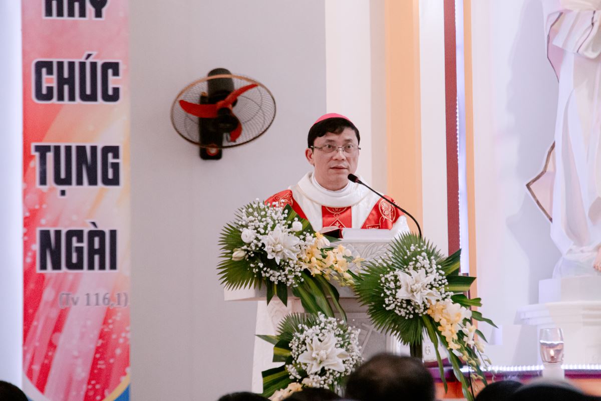 Về ý nghĩa của việc Cung hiến: Đức cha nhắc lại biến cố 15 năm trước, ngày 15/12/2010, ngôi thánh đường này được xức dầu thánh hiến. Ngài quảng diễn: "Nhà thờ khi được cung hiến trở thành nhà của Chúa, nơi thánh thiêng, là Nhà Cầu Nguyện... Đền thờ vật chất này là dấu chỉ của Đền thờ thiêng liêng là chính Thân thể Chúa Kitô". Ngài mời gọi cộng đoàn: "Anh em là đền thờ của Thiên Chúa. Do đó, bên cạnh việc giữ gìn nhà thờ gỗ đá khang trang sạch đẹp, chúng ta càng phải gìn giữ đền thờ tâm hồn và thân xác được thanh sạch, xứng đáng là nơi Chúa ngự"