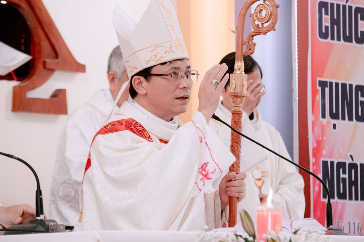 Trong bài giảng đầy xúc động, Đức cha Phaolô đã chia sẻ về niềm vui mà ngài gọi là "Ba trong một": Khánh thành nhà giáo lý mới, Lên Giáo xứ, và Kỷ niệm 15 năm Cung hiến Nhà thờ (2010-2025).