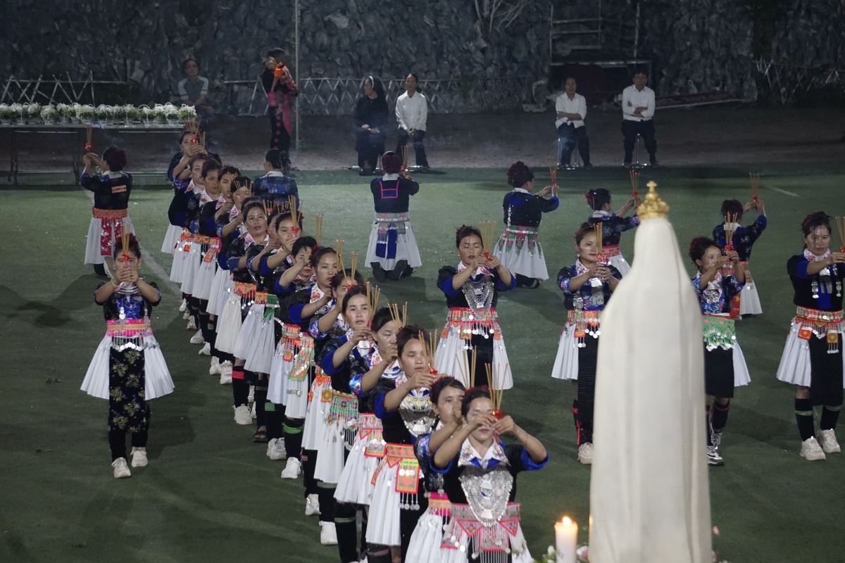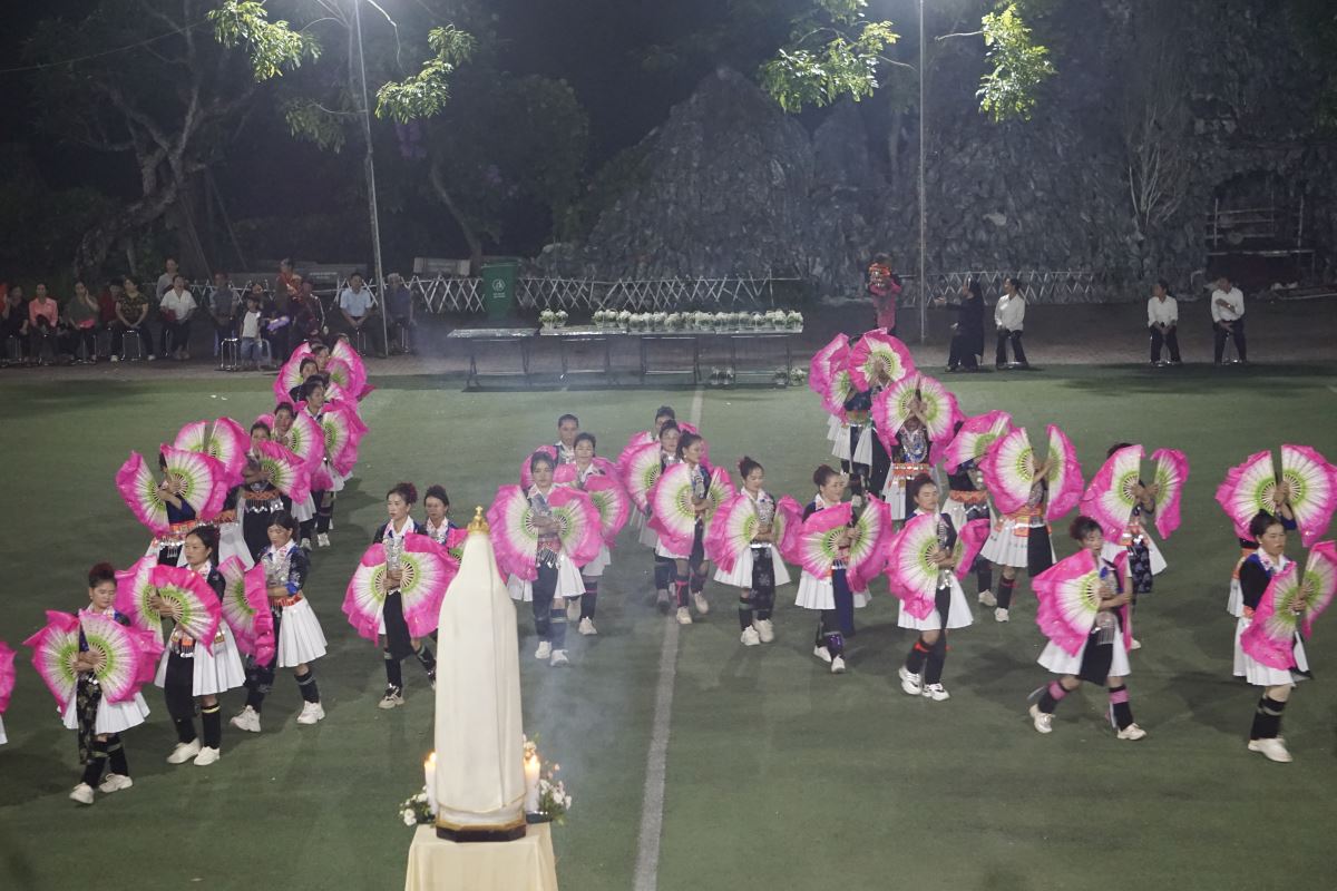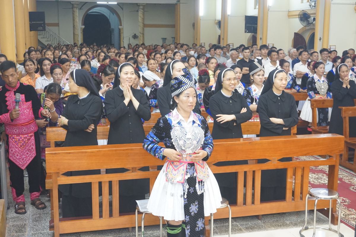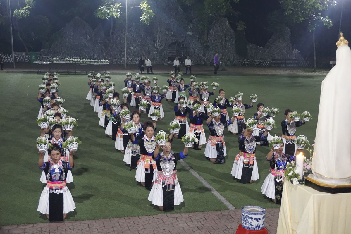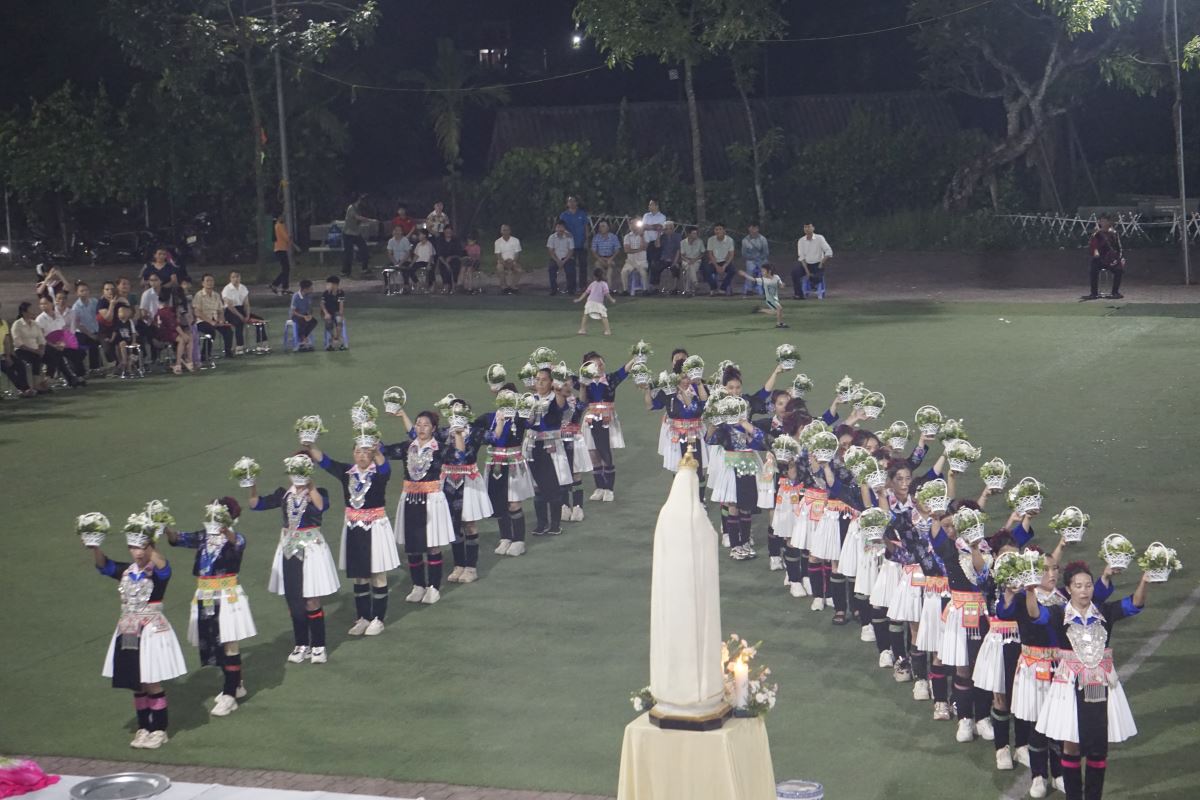 Đặc biệt, vào hồi 19g30, đội hoa cộng đoàn Nacôsa - Nậm Pồ trong trang phục truyền thống của đồng bào vùng Tây Bắc đã dâng lên Đức Mẹ những vũ điệu và lời ca chân thành, thể hiện tình mến yêu và lòng sùng kính Mẹ Maria một cách sống động và cảm động trong Tháng Hoa.