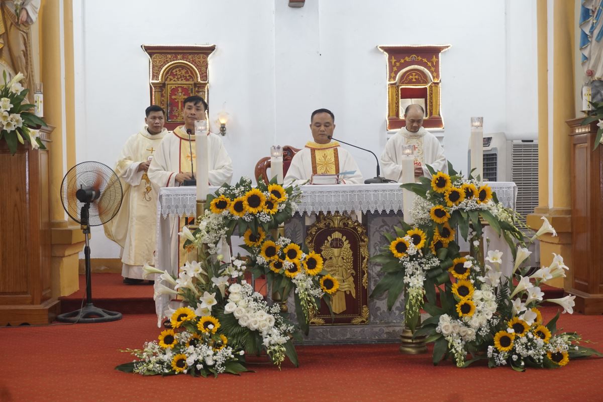 Tiếp đó, hai cộng đoàn hiệp thông tham dự Thánh lễ hành hương do Cha Giuse Đỗ Văn Đại chủ tế bằng tiếng H’mông. Đồng tế trong Thánh lễ có cha Giuse Nguyễn Văn Cường – cha xứ giáo xứ Yên Tập, cha Giuse Nguyễn Ngọc Ngoạn, và cha Phaolô Phùng Duy Điển. Đây là lần đầu tiên hai giáo xứ “kết nghĩa” cùng dâng Thánh lễ tại Nhà thờ Yên Tập.