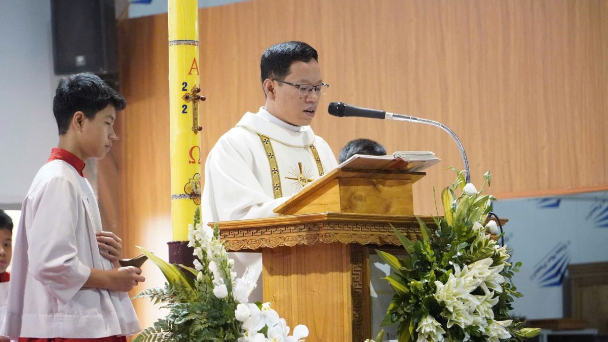 Giảng trong Thánh lễ, Cha Giuse đã giúp cộng đoàn chiêm ngắm sâu sắc hơn về mầu nhiệm Chúa Phục Sinh. Cha nhấn mạnh rằng: “Chính Chúa Phục Sinh là nguồn sáng mới xua tan đi những u tối của lo âu và tội lỗi trong đời sống thường ngày. Ánh sáng của Người không chỉ dừng lại ở ngôi mộ trống năm xưa, mà còn đang hiện diện và thôi thúc mỗi chúng ta sống yêu thương, trách nhiệm hơn với chính mình và những người xung quanh". Cha mời gọi cộng đoàn hãy để sức sống của Chúa Phục Sinh làm mới lại tâm hồn, biến mỗi người thành những chứng nhân sống động cho tình thương của Chúa giữa lòng thế giới hôm nay.