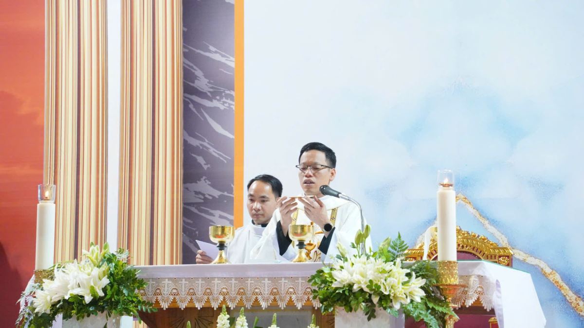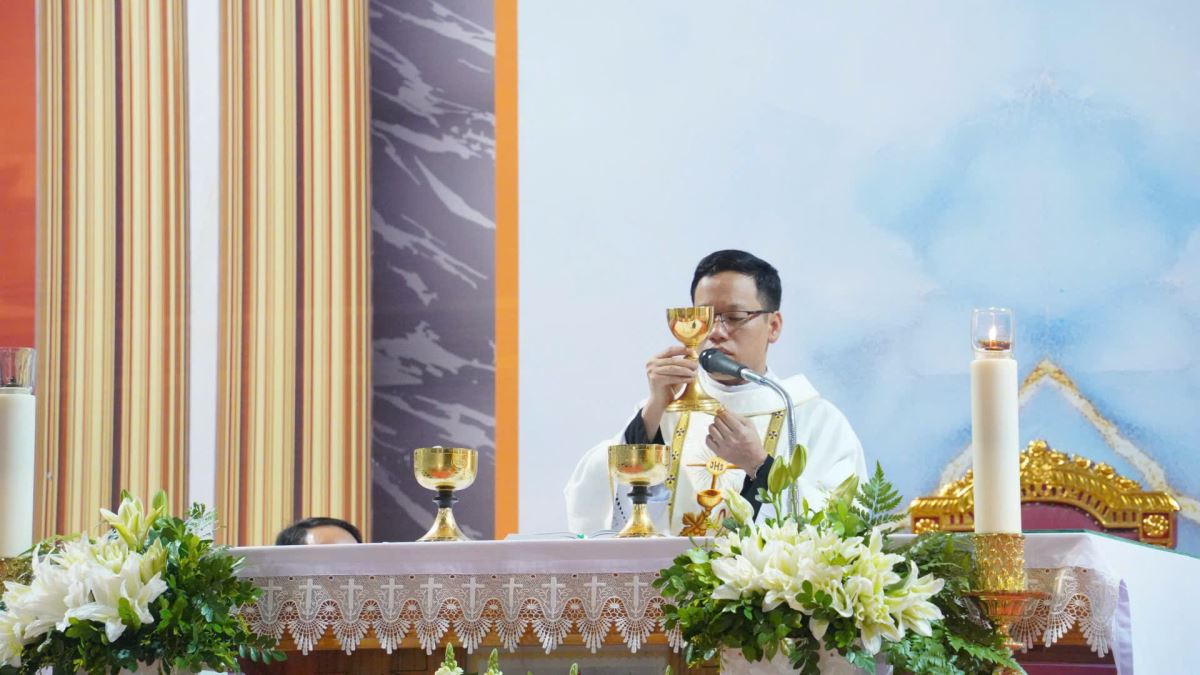 Mở đầu Thánh lễ, Cha Giuse đã gửi lời chúc mừng phục sinh tới Thầy xứ, quý dì và toàn thể cộng đoàn. Cha nhắn nhủ rằng: “Sự hiện diện đông đủ và rạng rỡ của mỗi người hôn nay chính là minh chứng sống động cho một cộng đoàn hiệp nhất, và xin Chúa Phục Sinh chúc lành cũng như tuôn đổ muôn ân sủng xuống trên mỗi người và mỗi gia đình”.