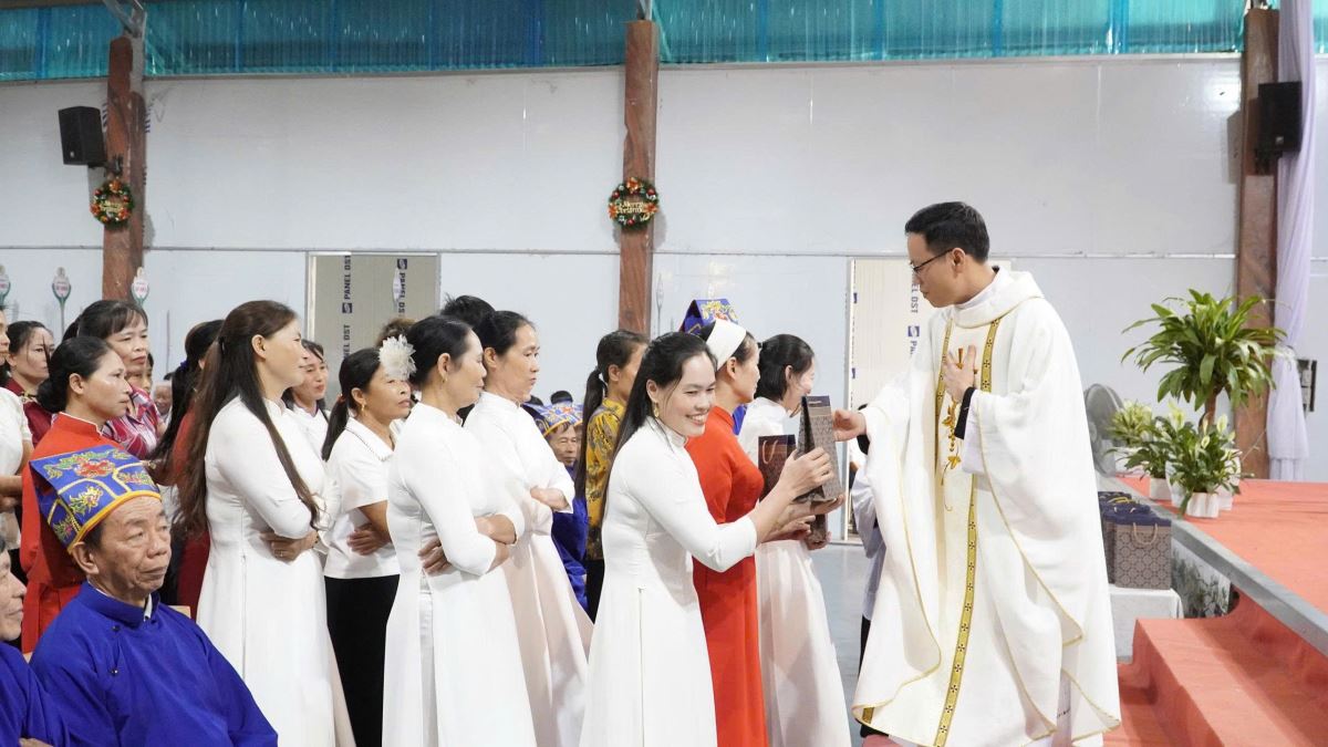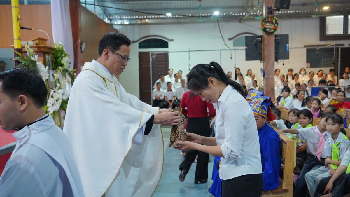 Tiếp đó, một nghi thức đầy ý nghĩa đã diễn ra: Cha Giuse đã long trọng thánh hóa những chiếc bánh dầy và những phần quà, đồng thời trực tiếp trao tặng phần thưởng cho các cá nhân và tập thể đã có thành tích xuất sắc trong kì thi kinh nguyện Mùa Chay năm nay.
