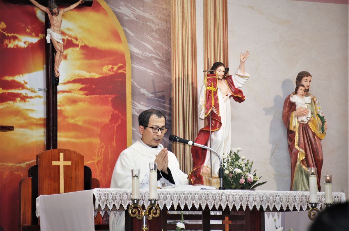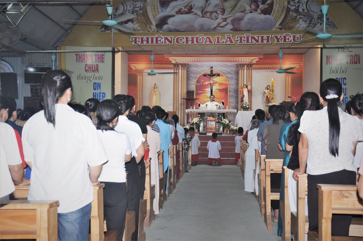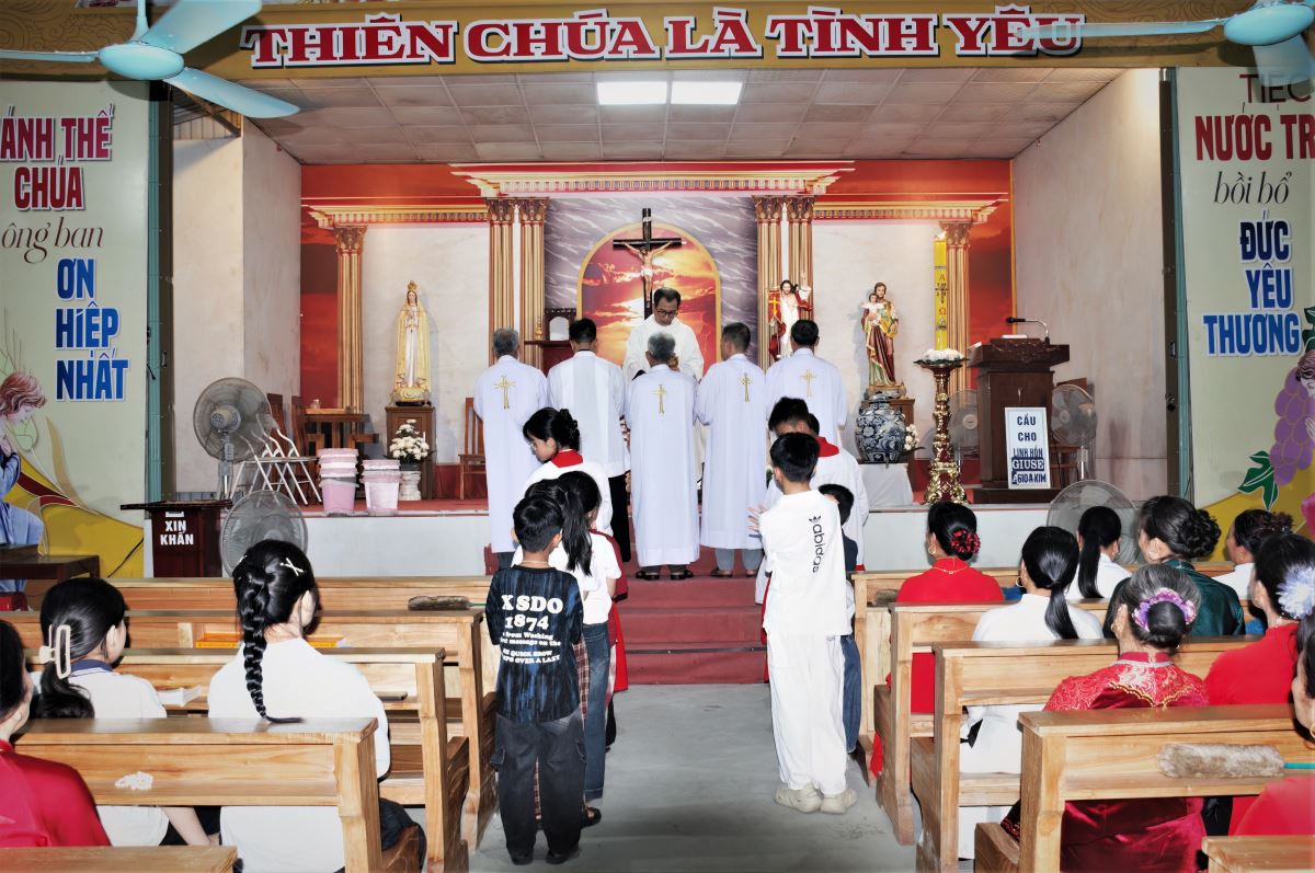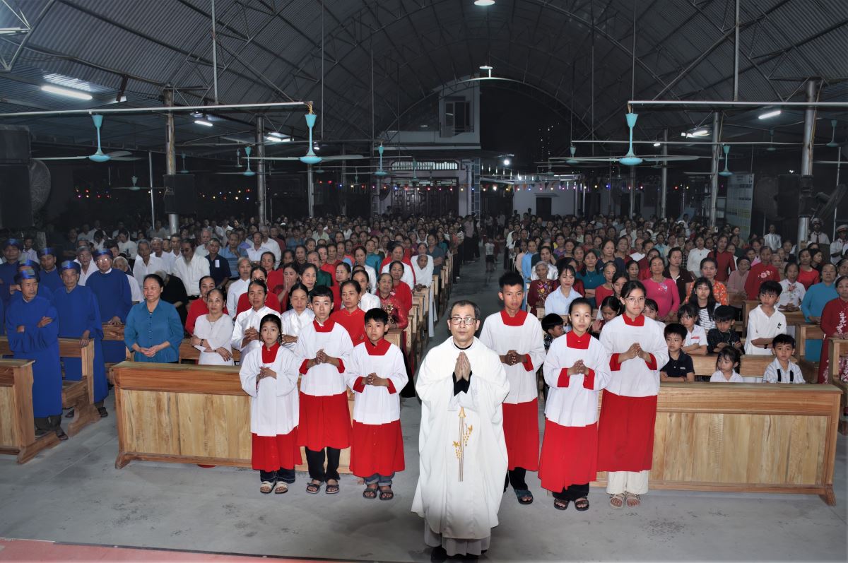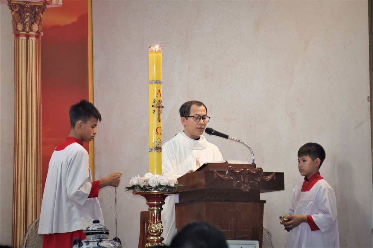 WGPHH - Trong niềm hân hoan của ngày đại lễ mừng Chúa sống lại, vào lúc 19g30, Chúa nhật ngày 05.4.2026, tại nhà thờ giáo xứ Trại Sơn, cộng đoàn dân Chúa đã long trọng quy tụ tham dự Thánh lễ Phục Sinh do cha phó đặc trách Vinh Sơn Vũ Văn Nguyện chủ sự. Hiệp dâng Thánh lễ có quý thầy cùng đông đảo bà con giáo dân trong toàn giáo xứ, tạo nên bầu khí sốt sắng, trang nghiêm nhưng chan hòa niềm vui và hy vọng.