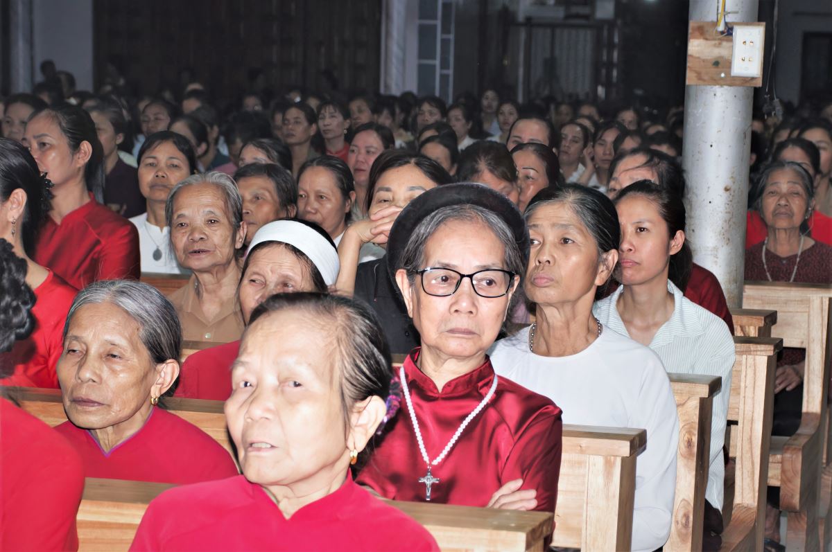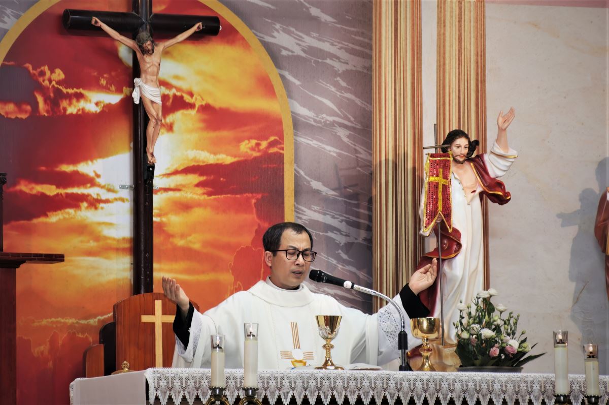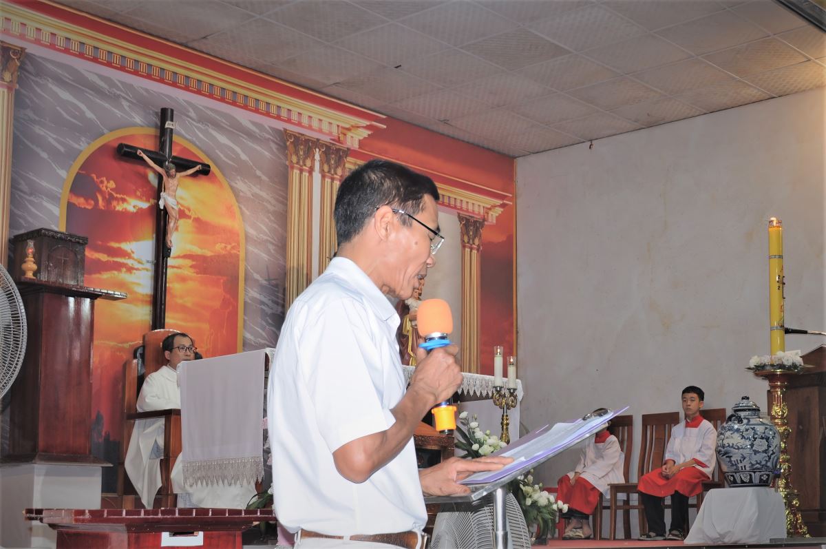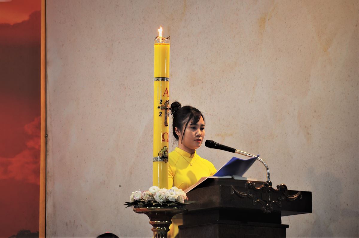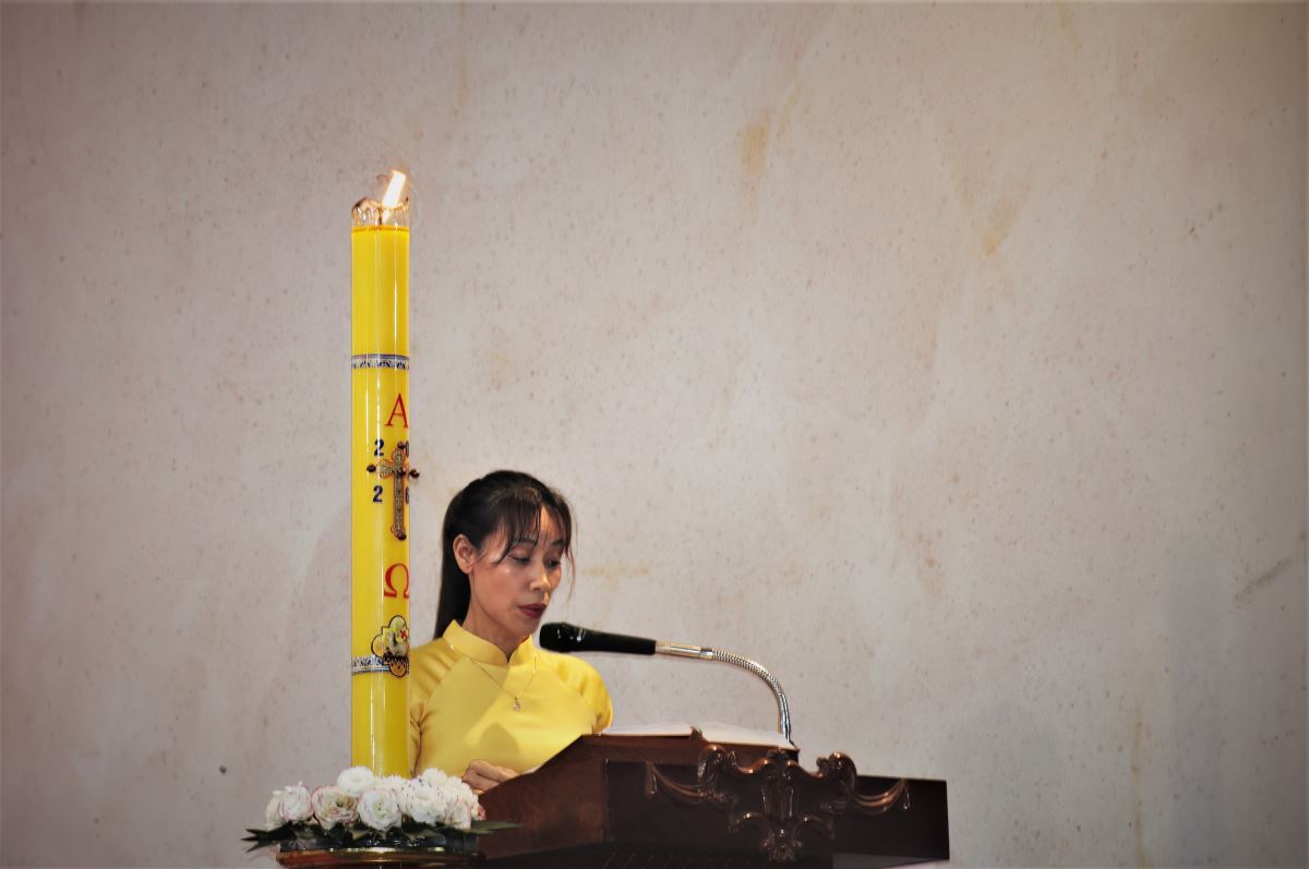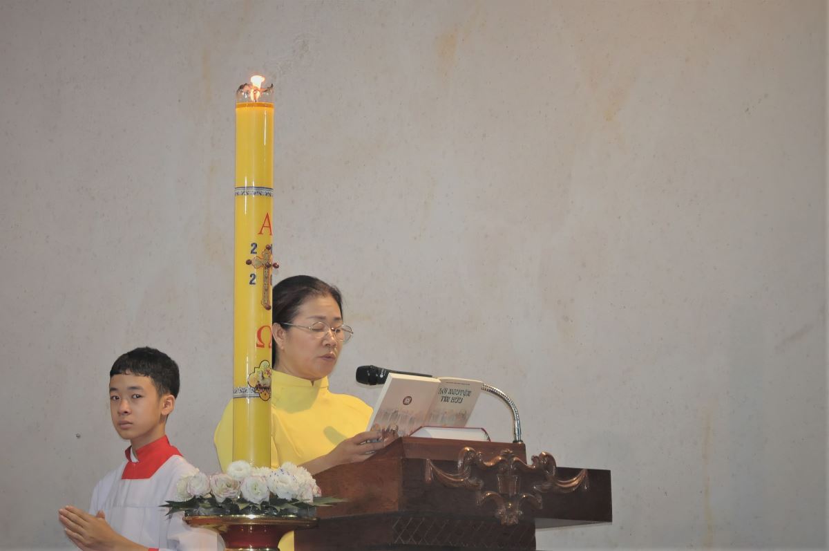 Trong phần chia sẻ Lời Chúa, cha Vinh Sơn đã giúp cộng đoàn suy niệm sâu sắc về tâm trạng của ba nhân vật khi ra mồ mà không thấy xác Chúa: - Bà Maria Mácđala: hoang mang, lo lắng và đau buồn khi thấy tảng đá đã lăn ra khỏi mồ. Tình yêu khiến bà đi tìm Chúa, nhưng đức tin còn chưa đủ để nhận ra Ngài đã sống lại.