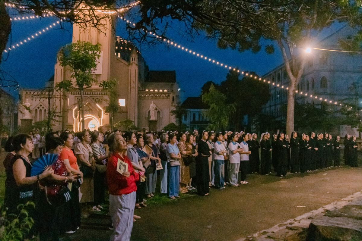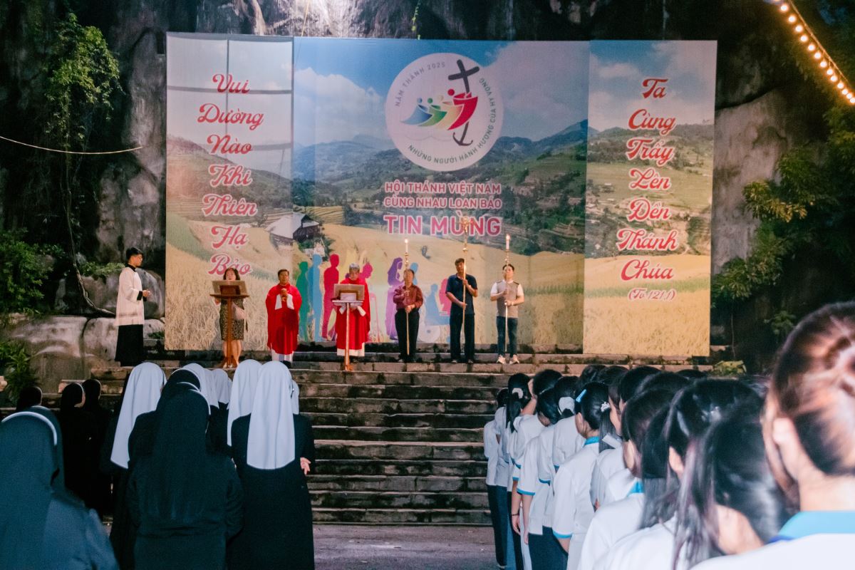 Lúc 19g00, đoàn hành hương cùng cộng đoàn tham dự nghi thức hành hương tại Hang đá Đức Mẹ.