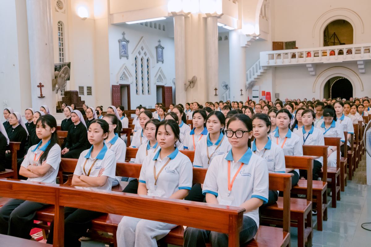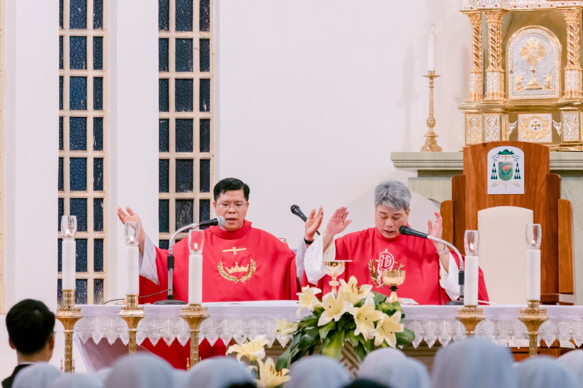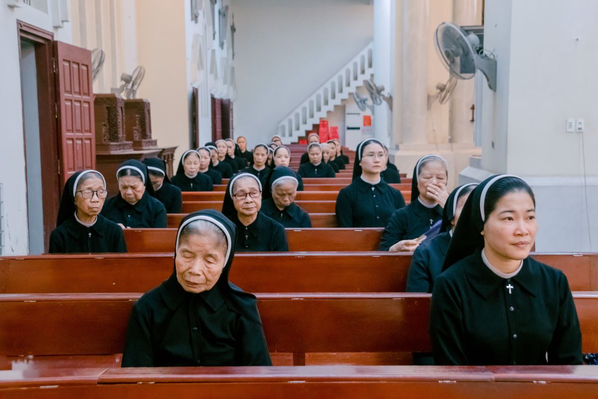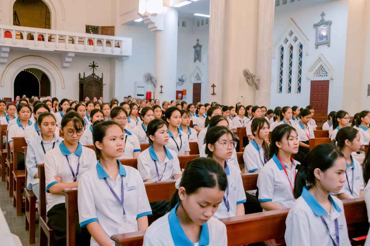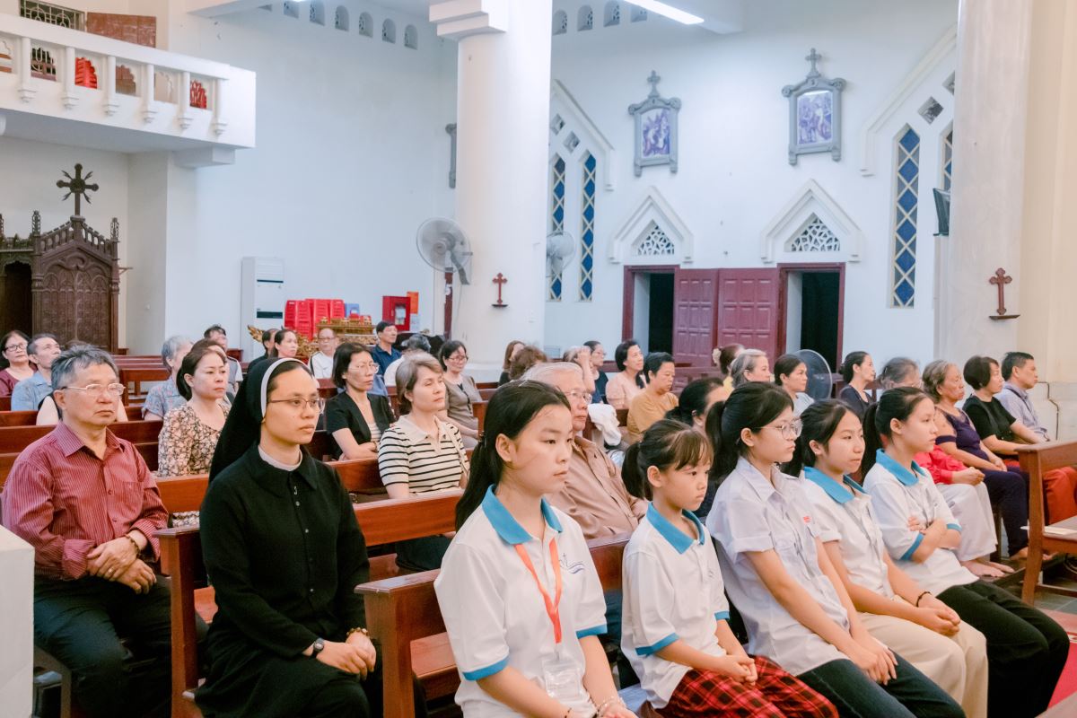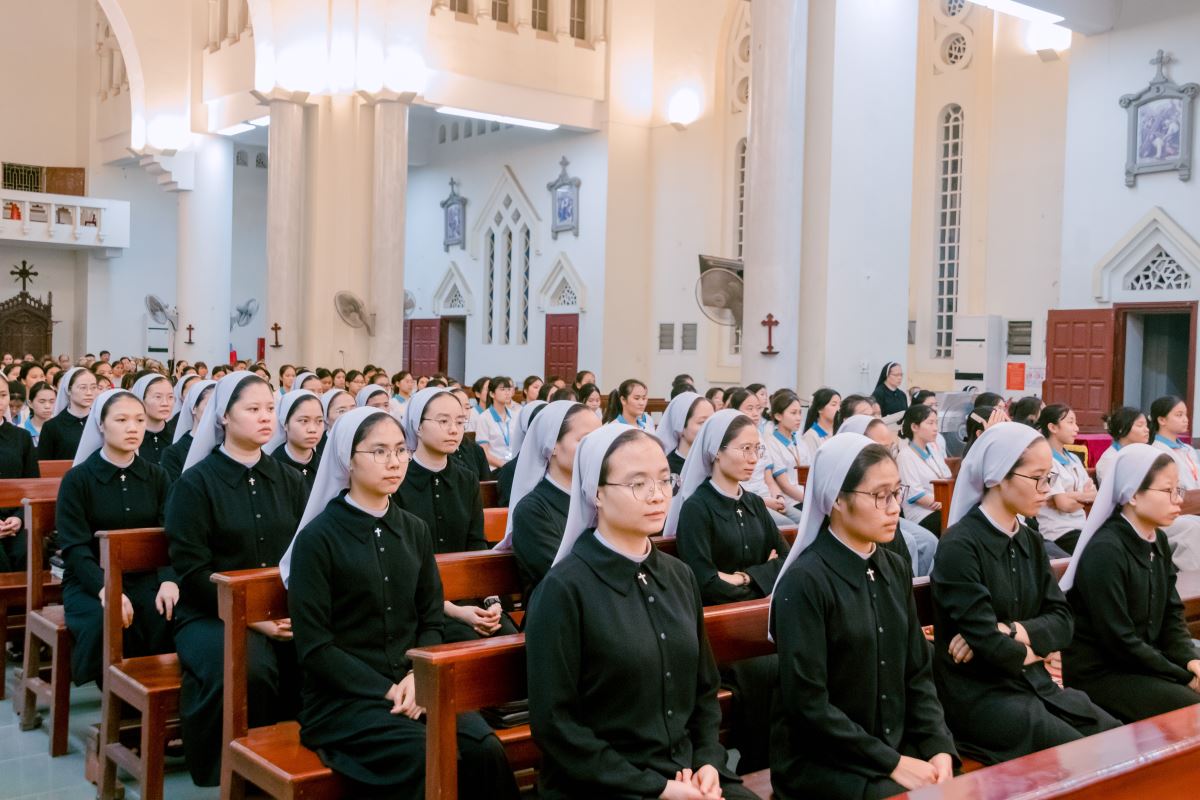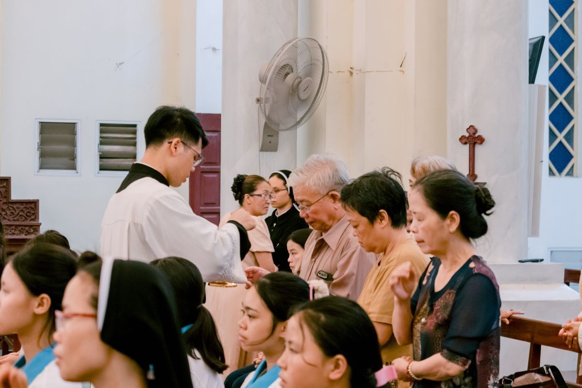 Hiệp dâng Thánh lễ có sự hiện diện của đoàn hành hương, quý dì Hội dòng Mến Thánh Giá Hưng Hóa, 105 em dự tu của Hội dòng, cùng cộng đoàn dân Chúa giáo xứ Sơn Lộc.