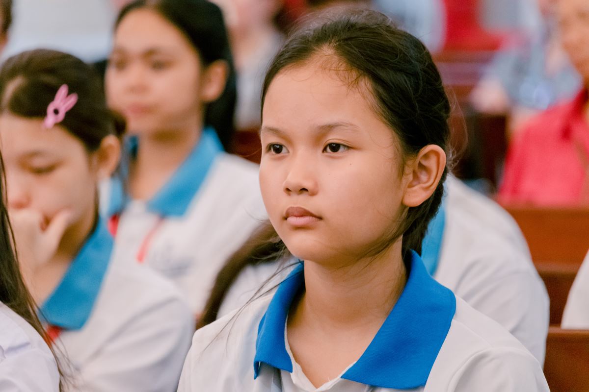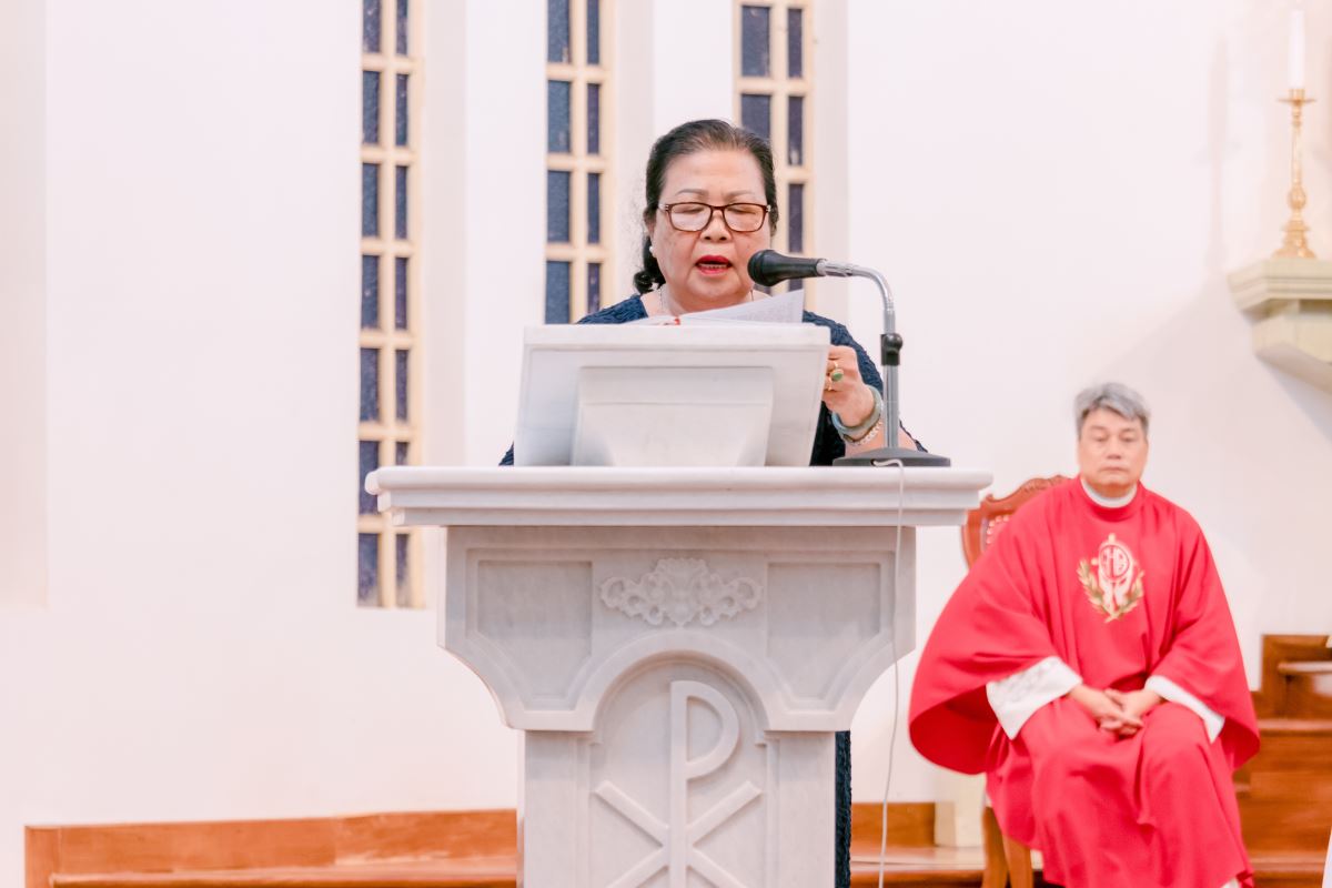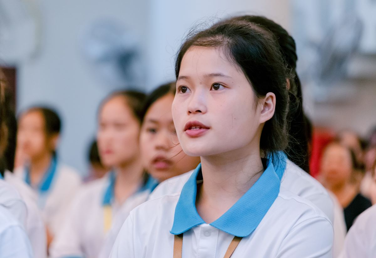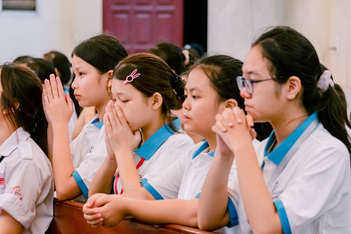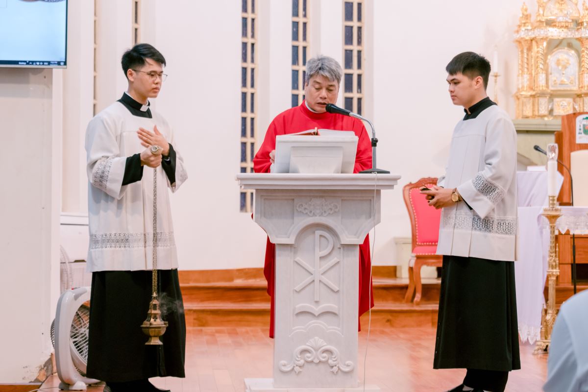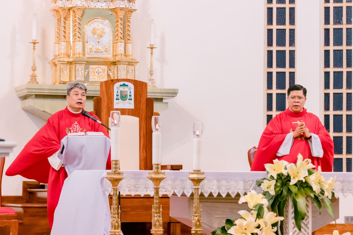 Hiệp dâng Thánh lễ có sự hiện diện của đoàn hành hương, quý dì Hội dòng Mến Thánh Giá Hưng Hóa, 105 em dự tu của Hội dòng, cùng cộng đoàn dân Chúa giáo xứ Sơn Lộc.
