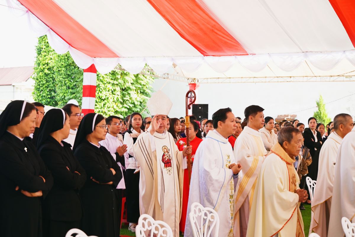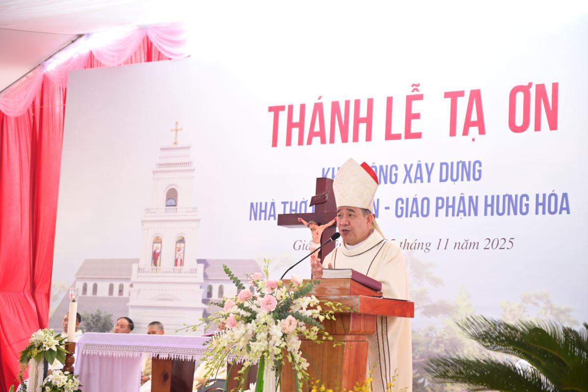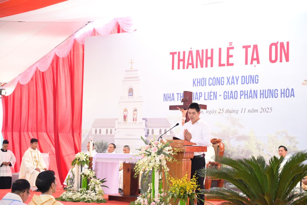 WGPHH - Sáng ngày 25.11.2025, Đức cha Đaminh Hoàng Minh Tiến – Giám mục Giáo phận Hưng Hóa đã về thăm mục vụ và dâng Thánh lễ tạ ơn khởi công xây dựng nhà thờ chuẩn xứ Giáp Liên. Đồng tế với ngài có cha Trưởng hạt Tây Bắc Phú Thọ đồng thời là cha xứ - Phaolô Nguyễn Quốc Anh, cùng quý cha trong và ngoài giáo hạt. Tham dự Thánh lễ, có sự hiện diện của quý tu sĩ nam nữ, quý ân nhân, quý khách đại diện chính quyền và đông đảo bà con giáo dân đến từ nhiều nơi cùng hòa chung tâm tình cảm tạ Thiên Chúa và cầu nguyện cho Chuẩn xứ Giáp Liên.