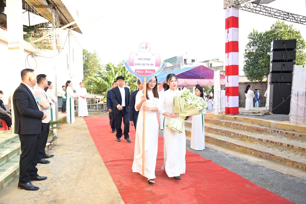 Đúng 08g30, xe ô tô chở Đức cha Đaminh Hoàng Minh Tiến – Giám mục Giáo phận Hưng Hóa đã dừng tại cổng chính nhà thờ Chuẩn xứ Giáp Liên trong niềm xúc động, vui mừng chào đón của hết thảy cộng đoàn.