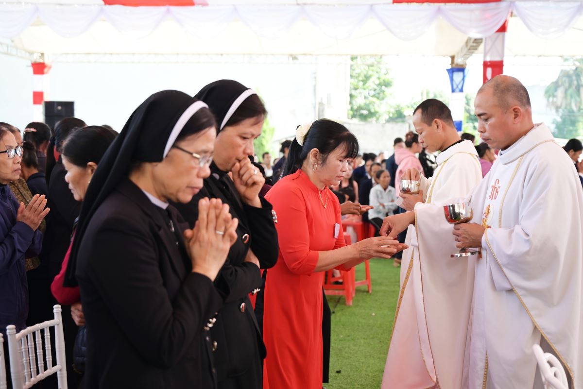 Sau nghi thức làm phép và đặt viên đá góc, cộng đoàn tiếp tục tham dự Thánh lễ trong bầu khí sốt sắng.