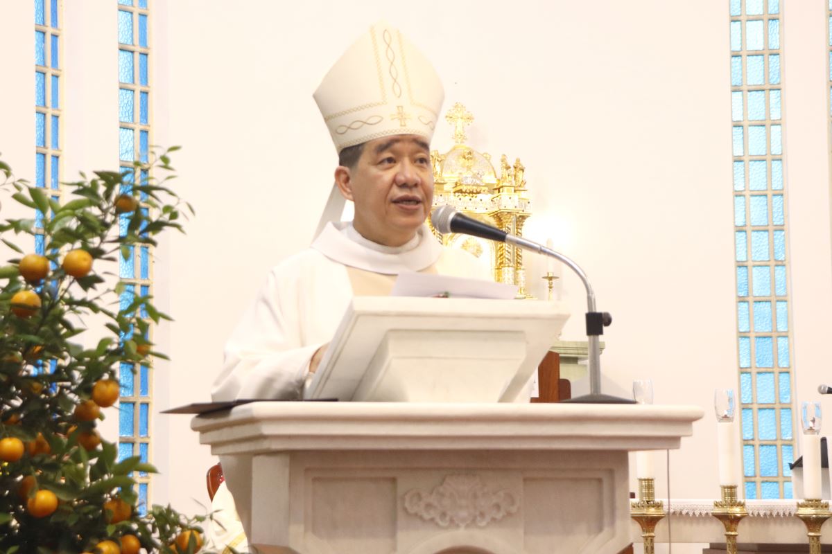 Chia sẻ trong bài giảng, Đức cha gợi lại truyền thống tốt đẹp của ngày Tết, ngày của những lời chúc. Người ta thường chúc nhau “Phúc, Lộc, Thọ”, “An khang thịnh vượng”, “Vạn sự như ý”, nhưng sâu xa nhất vẫn là lời chúc bình an. Từ đó, Đức cha mời gọi cộng đoàn suy tư về nguồn gốc của bình an đích thực.
