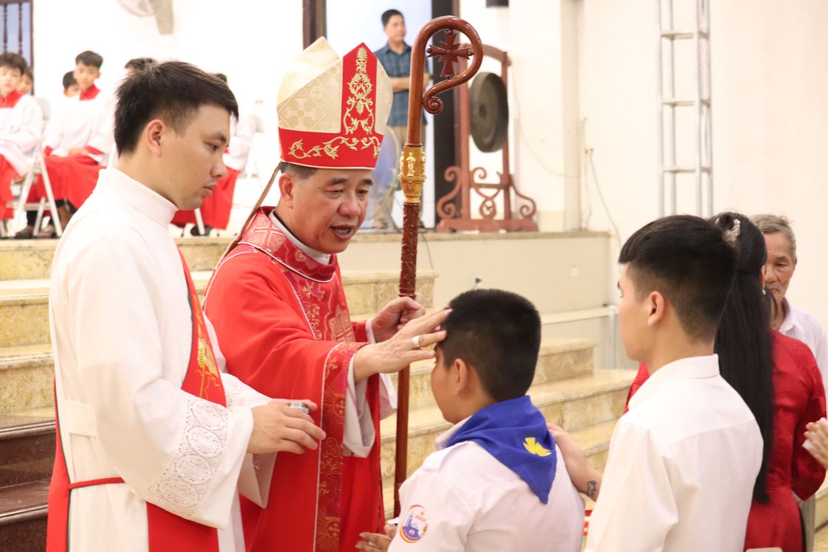 WGPHH – Ngày 08/8/2025, giáo xứ Hoàng Xá hân hoan chào đón Đức cha Đaminh Hoàng Minh Tiến, giám mục giáo phận Hưng Hóa về dâng Thánh lễ và ban Bí tích Thêm Sức cho 392 em thiếu nhi trong Giáo xứ.