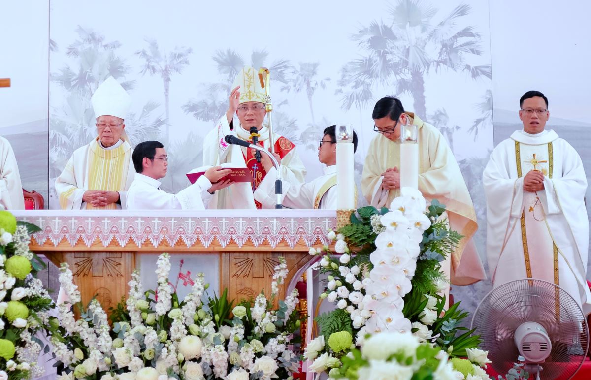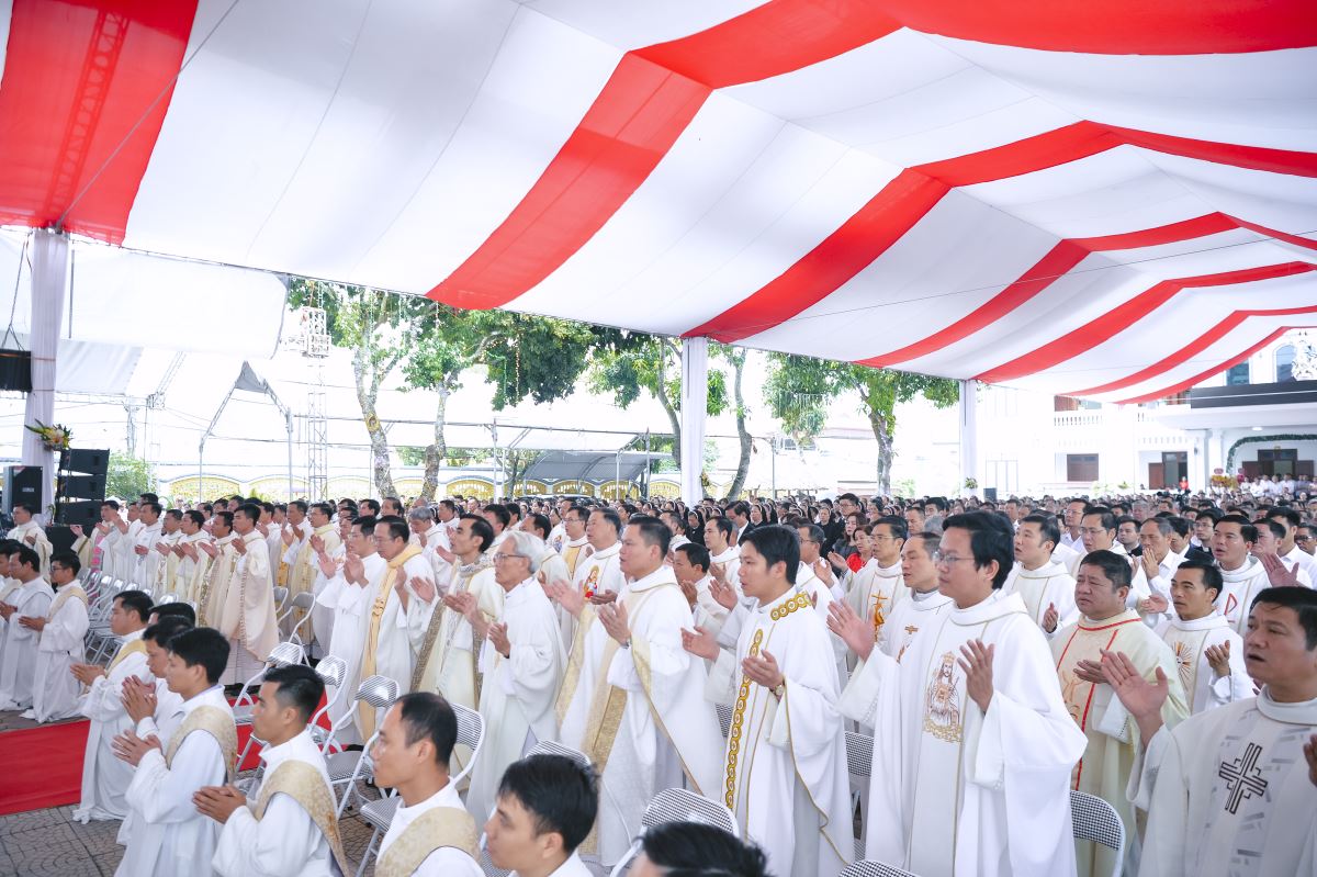Tạ ơn và tri ân Trong tâm tình sâu lắng của Thánh lễ Tạ ơn, Đức cha Phaolô dâng lời chúc tụng Thiên Chúa – Đấng giàu lòng thương xót – và thành kính tri ân các bậc tiền nhân đã âm thầm gieo trồng và dưỡng nuôi đức tin nơi mảnh đất quê hương.