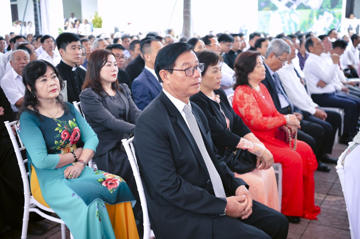 Ngài cũng chân thành cảm ơn quý Đức cha, quý cha, quý thầy phó tế, quý Bề trên, quý tu sĩ, quý chủng sinh, quý Ban Mục vụ giáo hạt, quý Hội đồng Mục vụ giáo xứ, quý ông bà cố, quý ân nhân, thân nhân và toàn thể cộng đoàn đã hiện diện, hiệp thông và cầu nguyện cho ngài trong Thánh lễ trọng thể này.