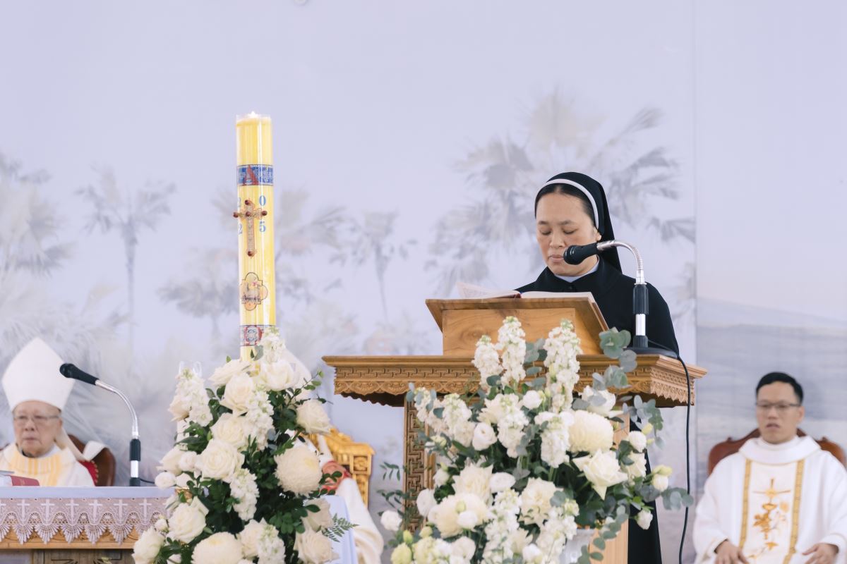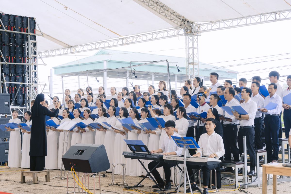 “Đẹp thay, ôi đẹp thay những bước chân gieo mầm cứu rỗi...” Đúng 08g30, trong tiếng kèn trống rộn ràng, giai điệu bài hát “Đẹp thay” (Lm. Mi Trầm) vang lên, mở đầu cho Thánh lễ Tạ ơn. Bài ca như lời ngợi khen sứ mạng tông đồ và niềm hân hoan của toàn thể cộng đoàn trước hồng ân Thiên Chúa.