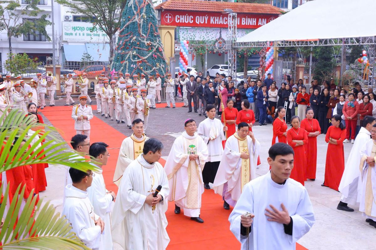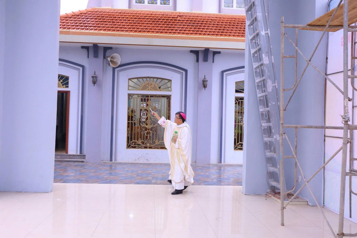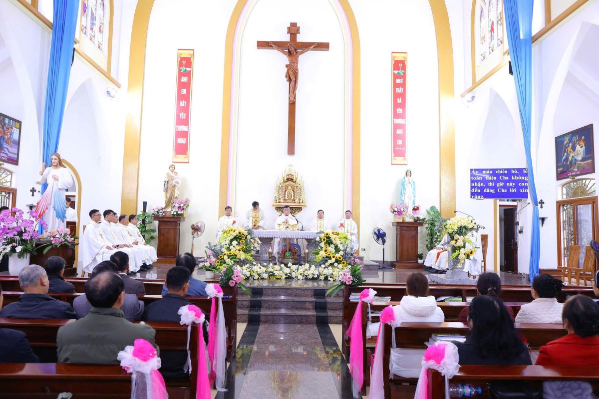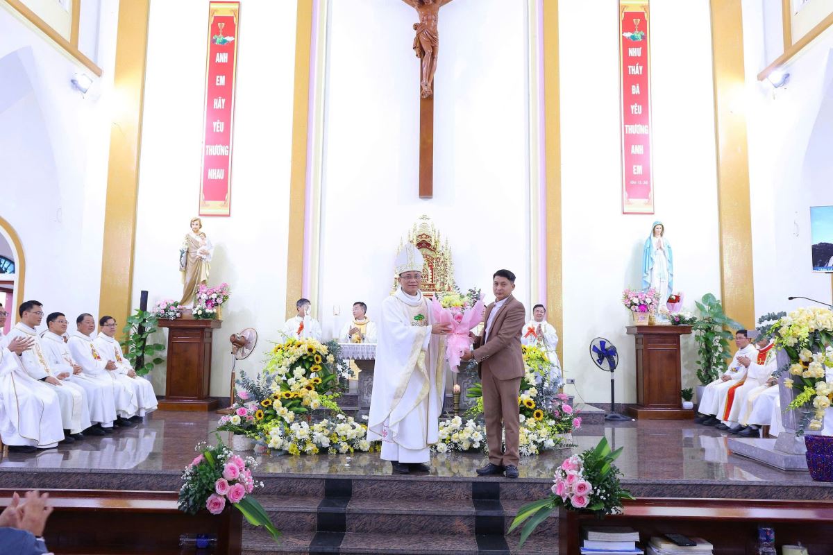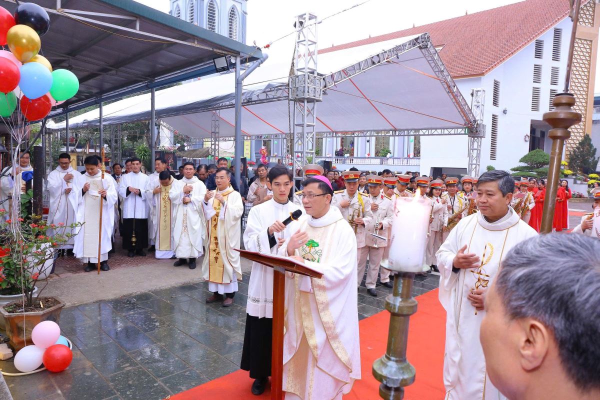 Đến 9g30, cộng đoàn cùng hiệp dâng thánh lễ tạ ơn. Trong bài chia sẻ, Đức cha Phaolô đã bày tỏ niềm vui và sự trân trọng trước tinh thần sống đạo sốt sắng của bà con giáo dân nơi đây. Ngài khích lệ cộng đoàn tiếp tục gìn giữ và phát triển đời sống đức tin, để mỗi người trở thành “tiếng chuông sống động” loan báo Tin Mừng bằng chính đời sống yêu thương, khiêm nhường và phục vụ. Tháp chuông không chỉ là một công trình kiến trúc, nhưng còn mang ý nghĩa thiêng liêng sâu sắc. Từ nay, mỗi tiếng chuông vang lên sẽ là lời mời gọi con người hướng lòng về Chúa, nhắc nhớ mọi người sống yêu thương, hiệp nhất và trung thành với Tin Mừng giữa đời sống thường ngày. Đặc biệt nơi vùng đất còn nhiều khó khăn, tiếng chuông nhà thờ sẽ là âm thanh của niềm an ủi, của sự nâng đỡ và của niềm tin không bao giờ tắt.