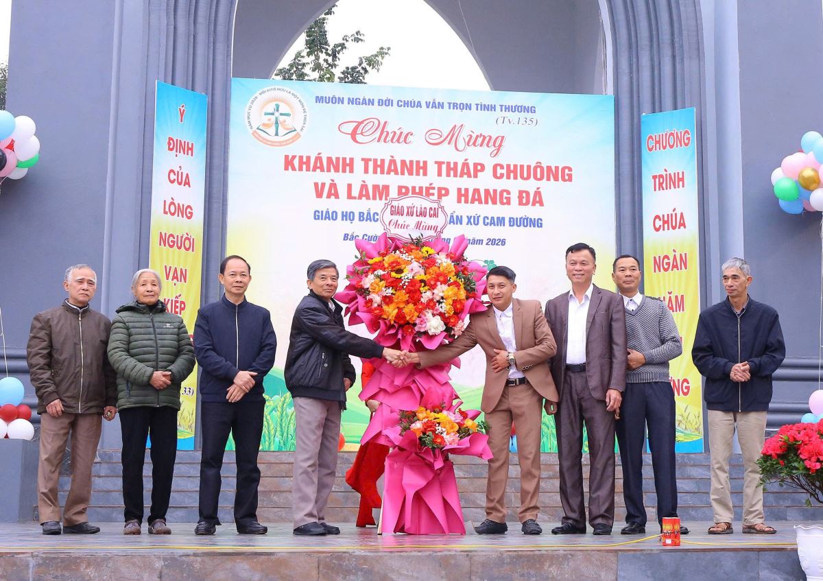 WGPHH – Trong niềm hân hoan và tâm tình tạ ơn Thiên Chúa, sáng ngày 27/01/2026, Đức Cha Phaolô Nguyễn Quang Đĩnh – Giám mục Phụ tá Giáo phận Hưng Hóa đã về giáo họ Bắc Cường, thuộc giáo xứ Lào Cai, để chủ sự Thánh lễ tạ ơn và cử hành nghi thức làm phép hang đá kính Đức Mẹ Mân Côi, đồng thời cắt băng khánh thành tháp chuông của giáo họ. Hiện diện và hiệp dâng trong Thánh lễ có cha quản hạt Giuse Đỗ Đình Tôn, cha xứ Phêrô Nguyễn Đình Đền, quý cha, quý tu sĩ và đông đảo cộng đoàn dân Chúa, góp phần làm lan tỏa bầu khí hiệp thông, trở thành nguồn khích lệ tinh thần sâu sắc cho giáo họ Bắc Cường.