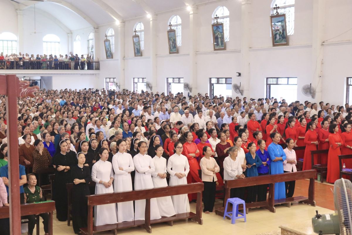 Ngay từ sáng sớm, hàng ngàn quý khách hành hương xa gần đã trở về với Giáo xứ Hoàng Xá để tham dự các cử hành Phụng vụ trong ngày Đại lễ.