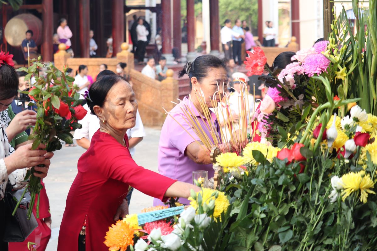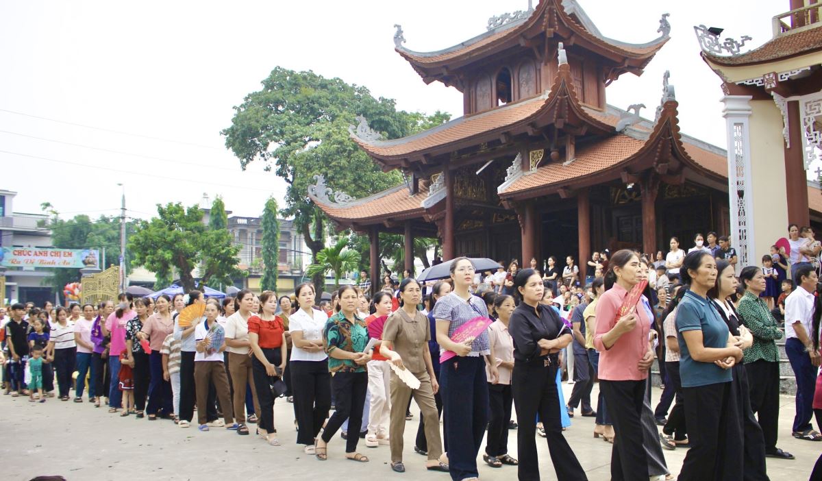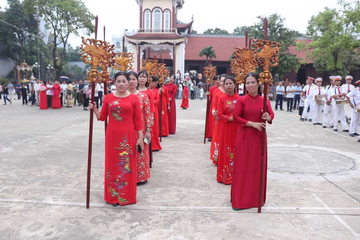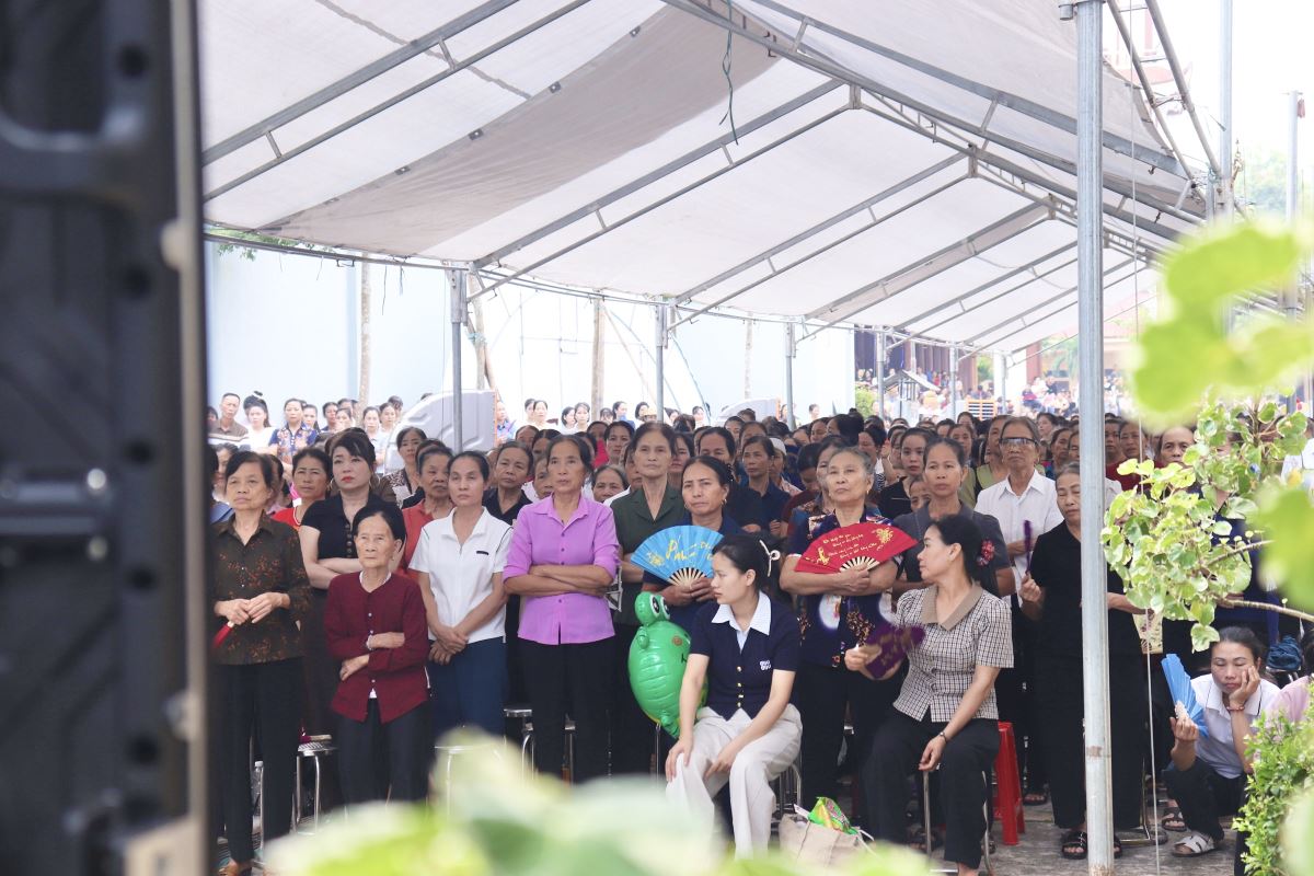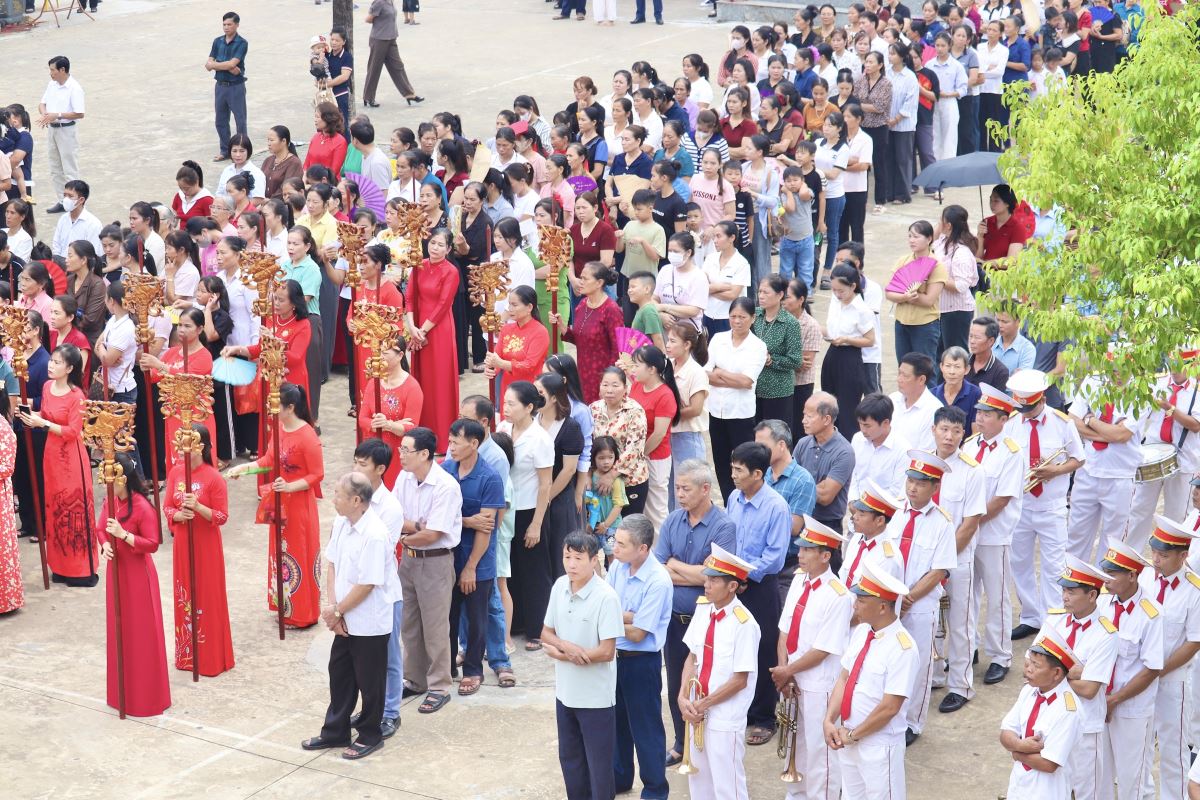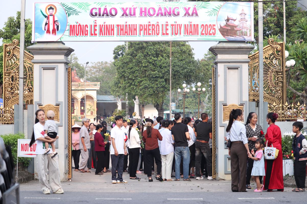 Dòng người đông đảo nhưng vẫn giữ được sự trang nghiêm khi vào dâng hương, dâng hoa và xin ơn tại Đền Cha Thánh Phêrô Lê Tùy. Hôm nay cũng là ngày Hành Hương năm thánh của Hiệp Hội tín hữu Mến Thánh Giá, Hội Gia đình Tận Hiến và Hội Mân Côi các giáo xứ trong Giáo hạt Tây Nam Phú Thọ, đồng thời cũng là quan thầy Ban Kèn Đồng Giáo xứ Hoàng Xá. Tất cả cùng hiệp thông trong tâm tình của ngày mừng lễ.