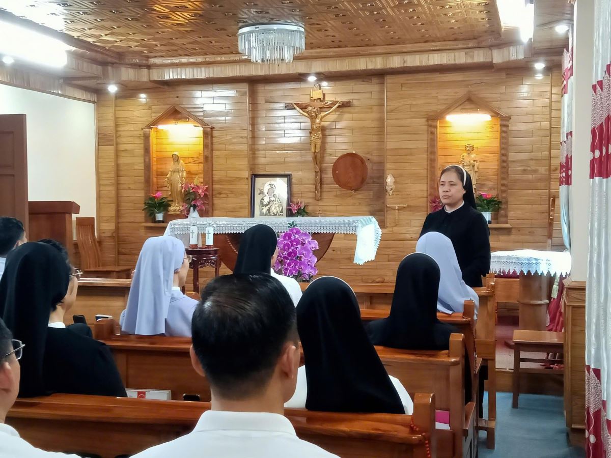 Đến 16g00, quý tu sĩ quy tụ tại nhà nguyện để chia sẻ sứ vụ. Đại diện các hội dòng lần lượt trình bày về đời sống và công việc mục vụ tại nơi mình được sai đến, cùng nhau chia sẻ những thuận lợi, khó khăn, thách đố và cả những thao thức trong đời dâng hiến. Những chia sẻ chân thành đã giúp nối kết tình hiệp thông và nâng đỡ nhau trong sứ vụ.