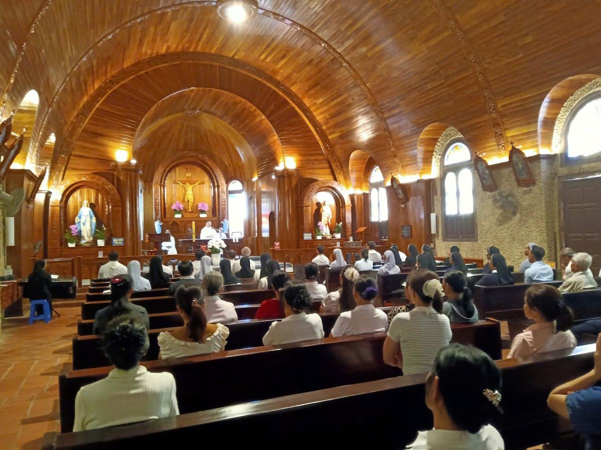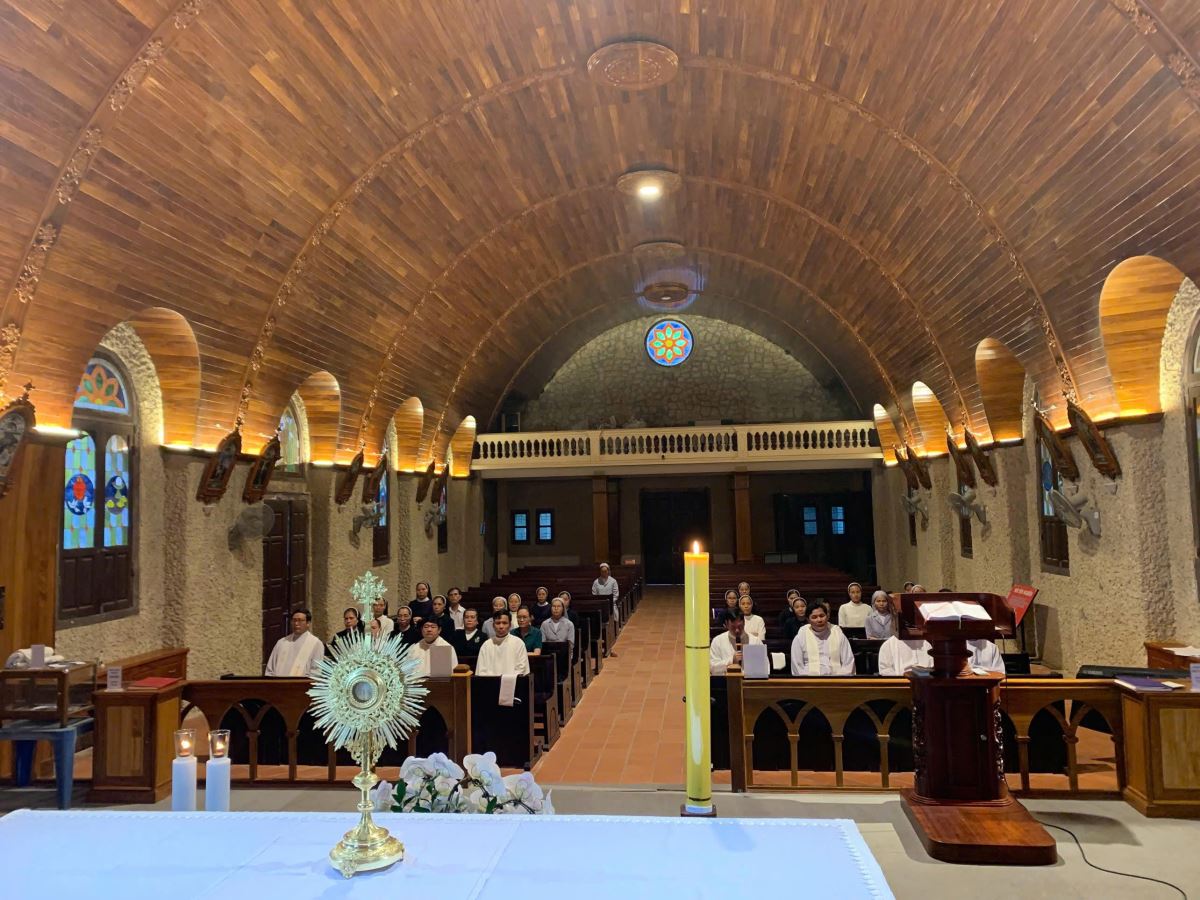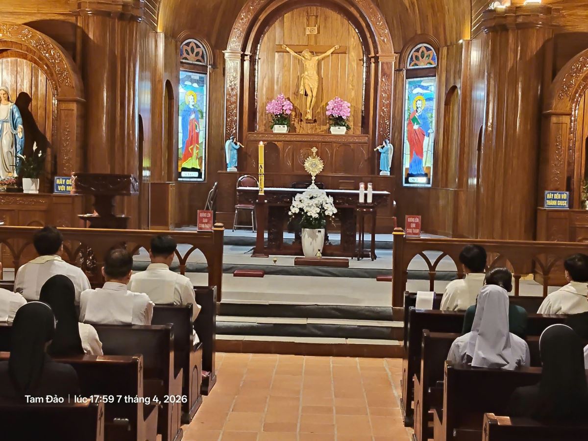 Tiếp đó, mọi người cùng lắng đọng tâm hồn bên Chúa Giêsu Thánh Thể trong không gian linh thiêng của ngôi thánh đường cổ kính Tam Đảo – nguồn mạch sức mạnh của đời sống thánh hiến.