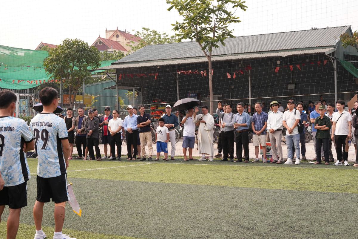 Buổi khai mạc diễn ra trong tinh thần hiệp nhất và vui tươi, với sự hiện diện của Cha Đaminh Hoàng Thế Bằng – cha xứ Giáo xứ Cát Ngòi và Cha Giuse Nguyễn Quốc Sỹ – cha xứ Giáo xứ Quế Dương. Sự hiện diện của quý cha không chỉ thể hiện sự quan tâm, nâng đỡ đời sống sinh hoạt của các hội đoàn, mà còn là nguồn khích lệ tinh thần lớn lao cho các cầu thủ tham gia giải đấu.