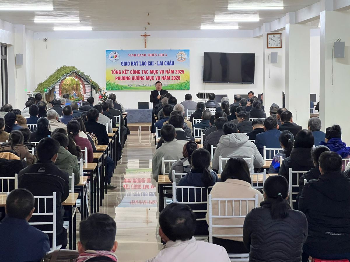 WGPHH - Sáng ngày 17.12.2025, trong bầu khí linh thiêng và tràn đầy niềm vui tạ ơn, Giáo hạt Lào Cai- Lai Châu đã long trọng tổ chức ngày tổng kết mục vụ năm 2025, kết hợp với cuộc hành hương Năm Thánh tại nhà thờ Sapa. Đây là thời gian ý nghĩa để cộng đoàn dân Chúa cùng nhau nhìn lại hành trình đức tin đã qua, đồng thời kín múc ân sủng cho chặng đường mục vụ sắp tới.