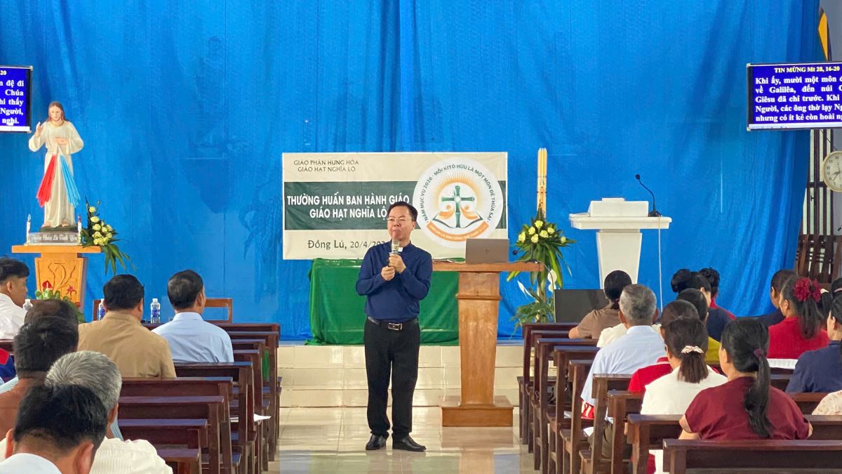 Sau phần khai mạc, quý chức bước vào giờ thường huấn thứ nhất với đề tài: Học hỏi Thư chung Hội đồng Giám mục Việt Nam 2025, do cha An-tôn Nguyễn Đức Hiểu – Phó đặc trách Ủy ban Giáo dân Giáo phận, trình bày. Trong phần chia sẻ, cha An-tôn nhấn mạnh: sứ mạng loan báo Tin Mừng không chỉ là ưu tiên hàng đầu của Giáo Hội, nhưng còn là trách nhiệm của mọi Kitô hữu.