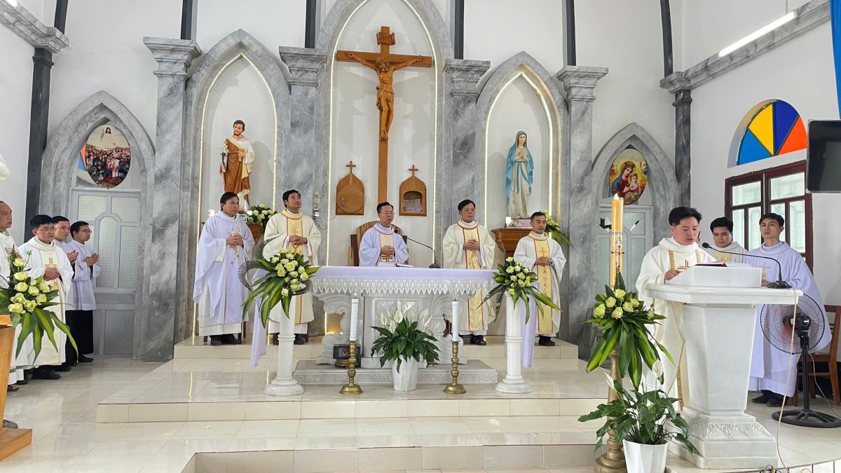 Sau lời nguyện hiệp lễ, cha Quản hạt nhắc lại ba định hướng mục vụ mà giáo hạt đã thống nhất trong dịp tổng kết năm 2025, gồm: cổ võ việc đọc kinh gia đình; thực hiện 5 phút học giáo lý trước mỗi Thánh lễ; và duy trì việc dạy giáo lý Chúa Nhật cho các em thiếu nhi quanh năm.