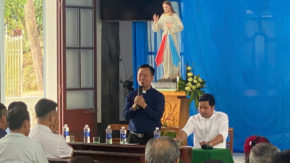 Tiếp đó, quý tham dự viên bước vào đề tài thứ ba: Canh tân hành trình khai tâm Kitô giáo, hướng đến xây dựng cộng đoàn môn đệ thừa sai, do cha Phê-rô Nguyễn Duy Trường – Chánh xứ Mỹ Hưng, trình bày. Qua đó, cha Phê-rô giúp quý chức vụ ý thức rõ hơn về căn tính người môn đệ thừa sai, đồng thời mời gọi mỗi người biết “đi ra” từ chính cộng đoàn giáo xứ để sống và làm chứng cho Tin Mừng.