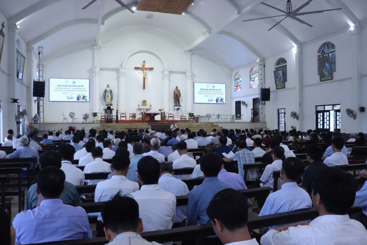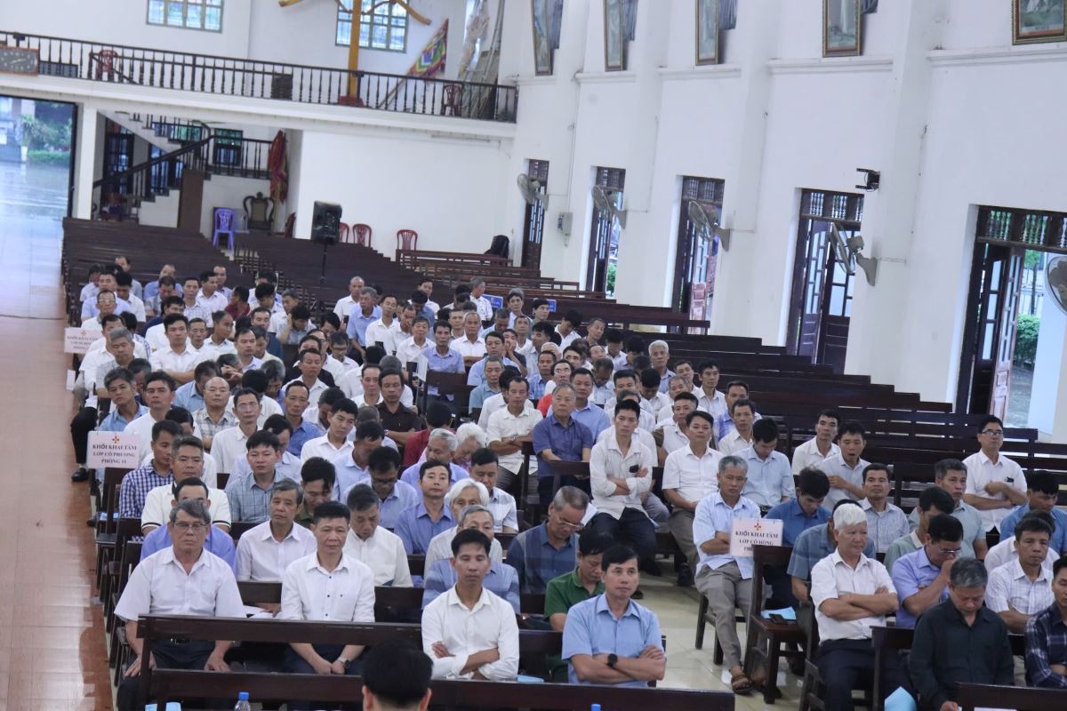Hiện diện trong buổi thường huấn có cha Giuse Nguyễn Ngọc Ngoạn - Phó chủ tịch Ủy ban Mục vụ Giáo dân Giáo phận, cha Giuse Vũ Công Phường - Trưởng Ban Mục vụ Giáo dân Giáo hạt, quý cha, quý thầy, Ban Điều hành Mục vụ Giáo hạt, cùng hơn 200 quý chức thuộc Hội đồng Giáo xứ và Ban Hành giáo.