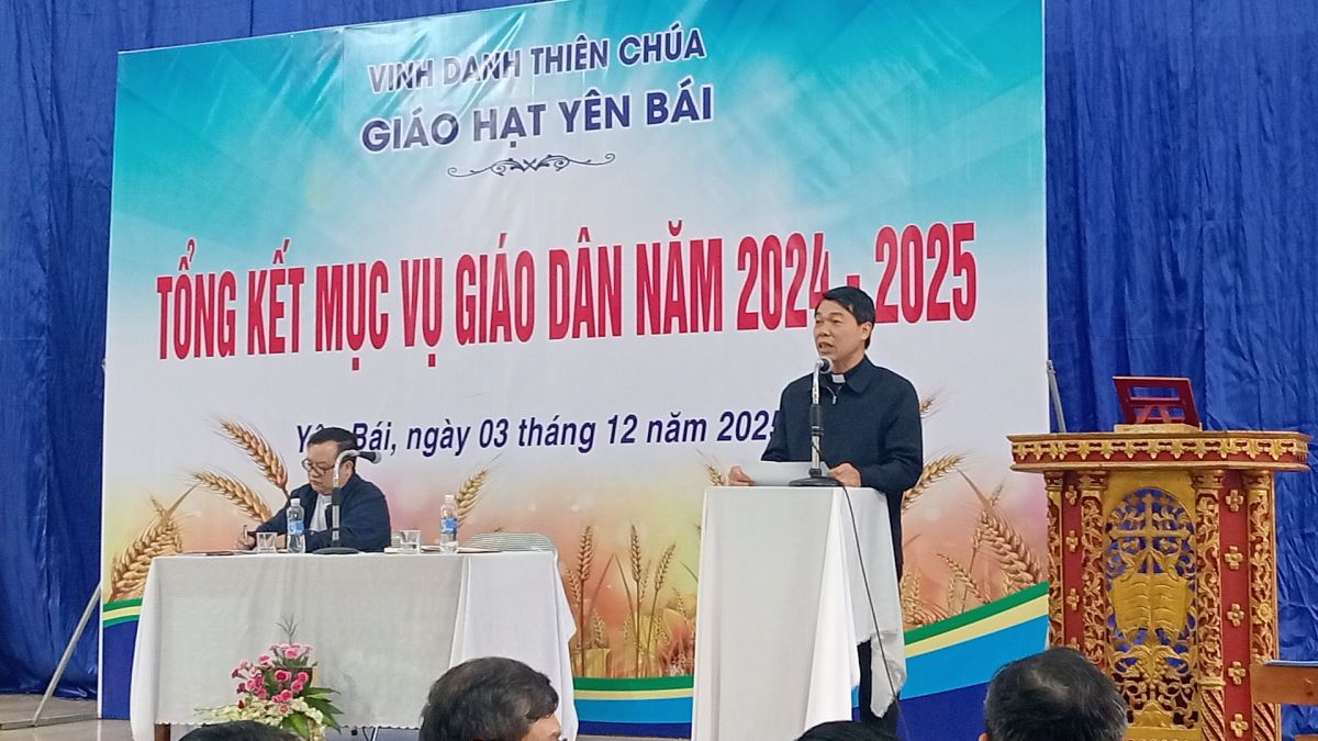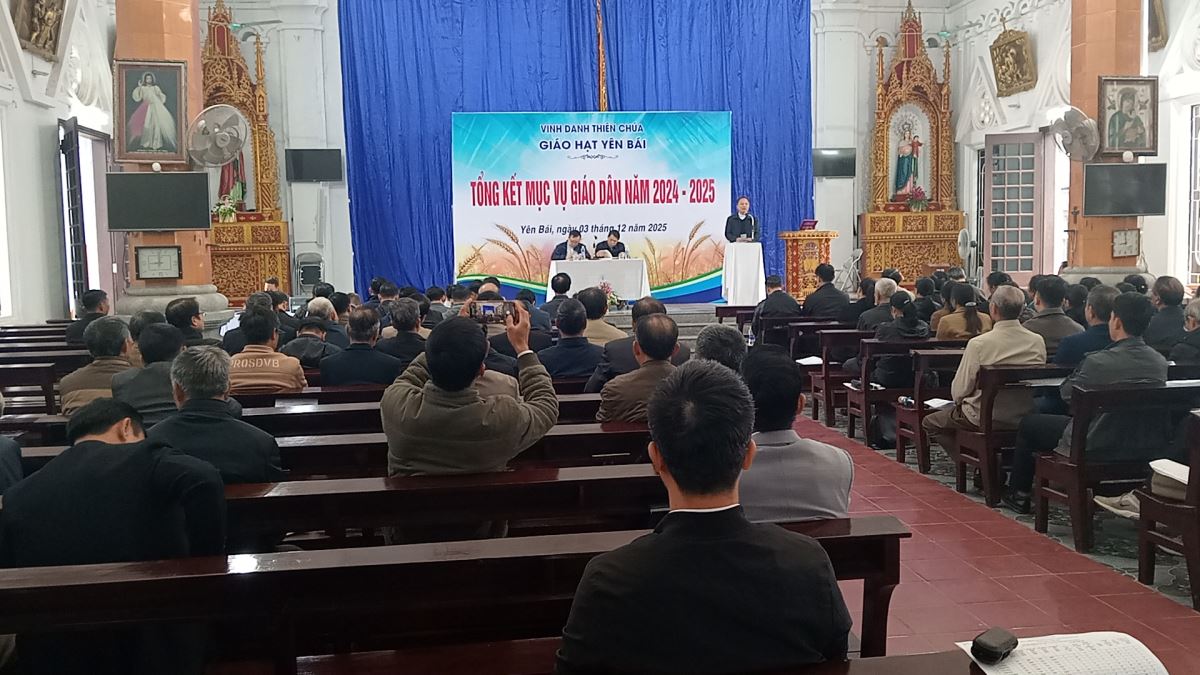 WGPHH – Sáng Thứ Tư, ngày 03.12.2025, trong niềm hân hoan mừng kính thánh Phanxicô Xaviê, quan thầy các xứ truyền giáo, Giáo hạt Yên Bái đã tổ chức Hội nghị tổng kết công tác mục vụ năm 2025 tại nhà thờ Giáo xứ Yên Bái. Hội nghị diễn ra dưới sự chủ trì của cha Quản hạt Phêrô Phạm Thanh Bình, cùng sự hiện diện của quý cha triều, quý cha thuộc các dòng tu – tu hội đang phục vụ trong giáo hạt, quý thầy, quý dì, cùng đại diện các Hội đồng mục vụ đến từ 29 giáo xứ và chuẩn xứ.