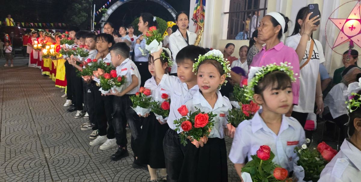 Kết thúc cuộc rước, đội hoa thiếu nhi của giáo họ Giữa Hiền đã dâng lên Mẹ những vãn hoa để tỏ lòng thành kính và mến yêu đối với Mẹ Maria.