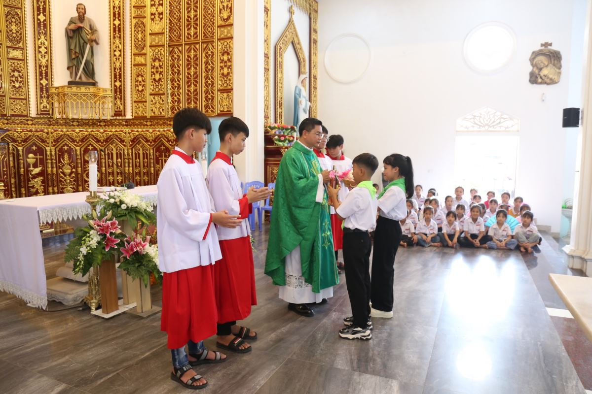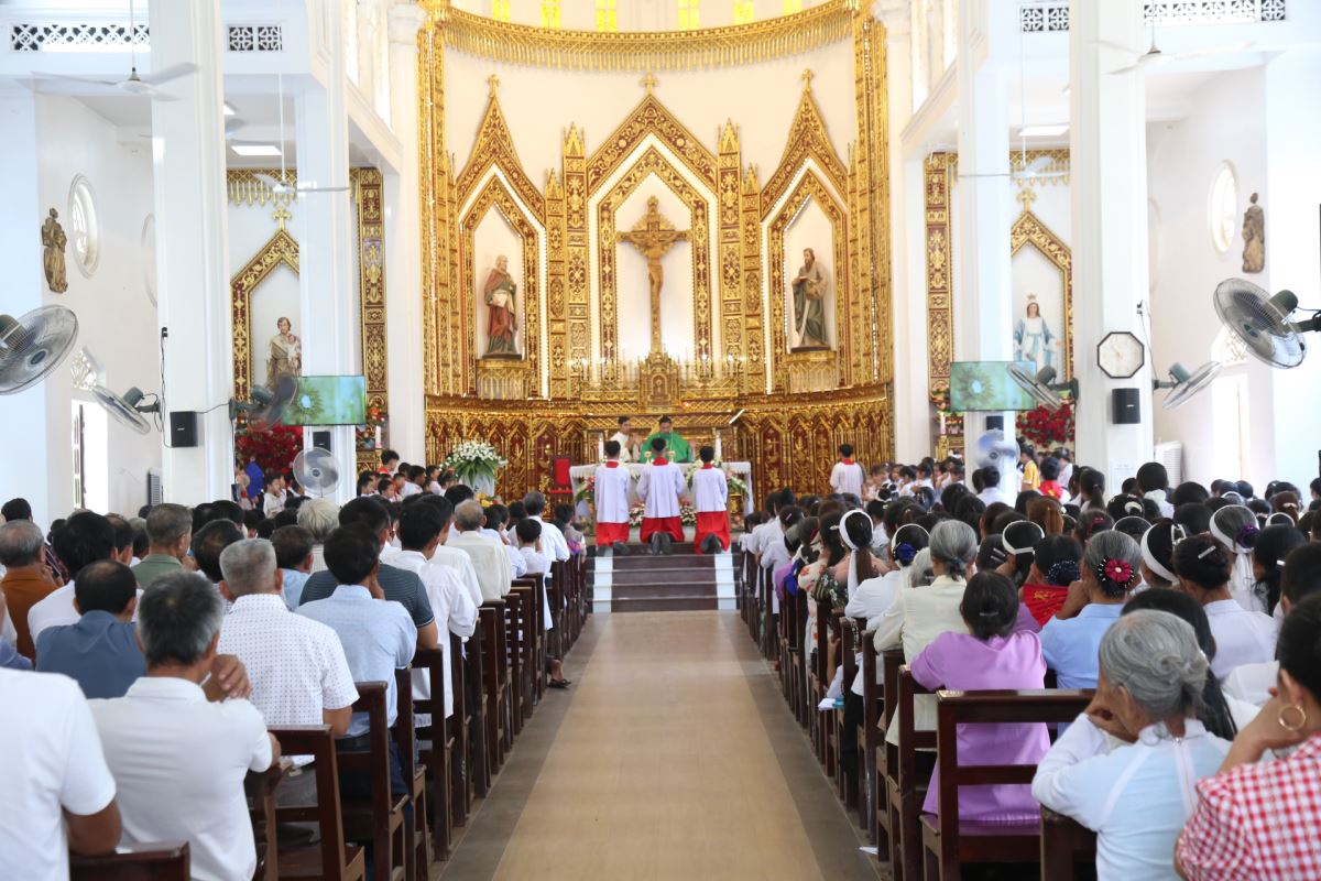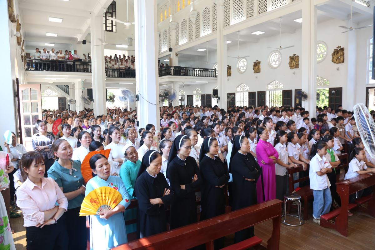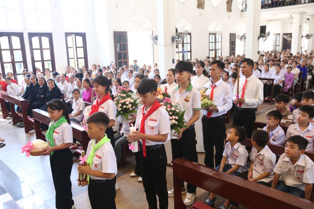 Ngay sau đó, lúc 9g45, Thánh lễ Chúa Nhật XXVIII Thường niên – Năm C được cử hành cách long trọng do Cha xứ Giuse chủ tế. Tham dự Thánh lễ có thầy phó tế Giuse Nguyễn Văn Thưởng, quý dì Mến Thánh Giá Hưng Hóa tại Hiền Quan cùng đông đảo bà con giáo dân trong giáo xứ.