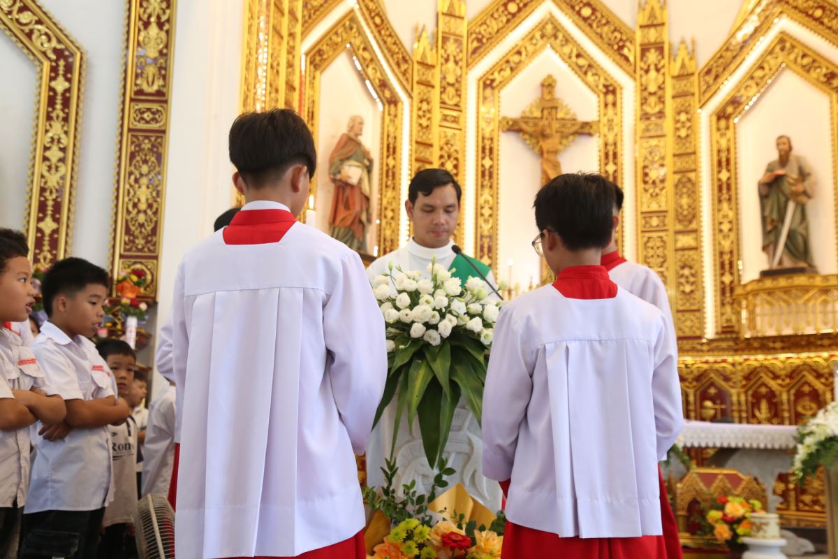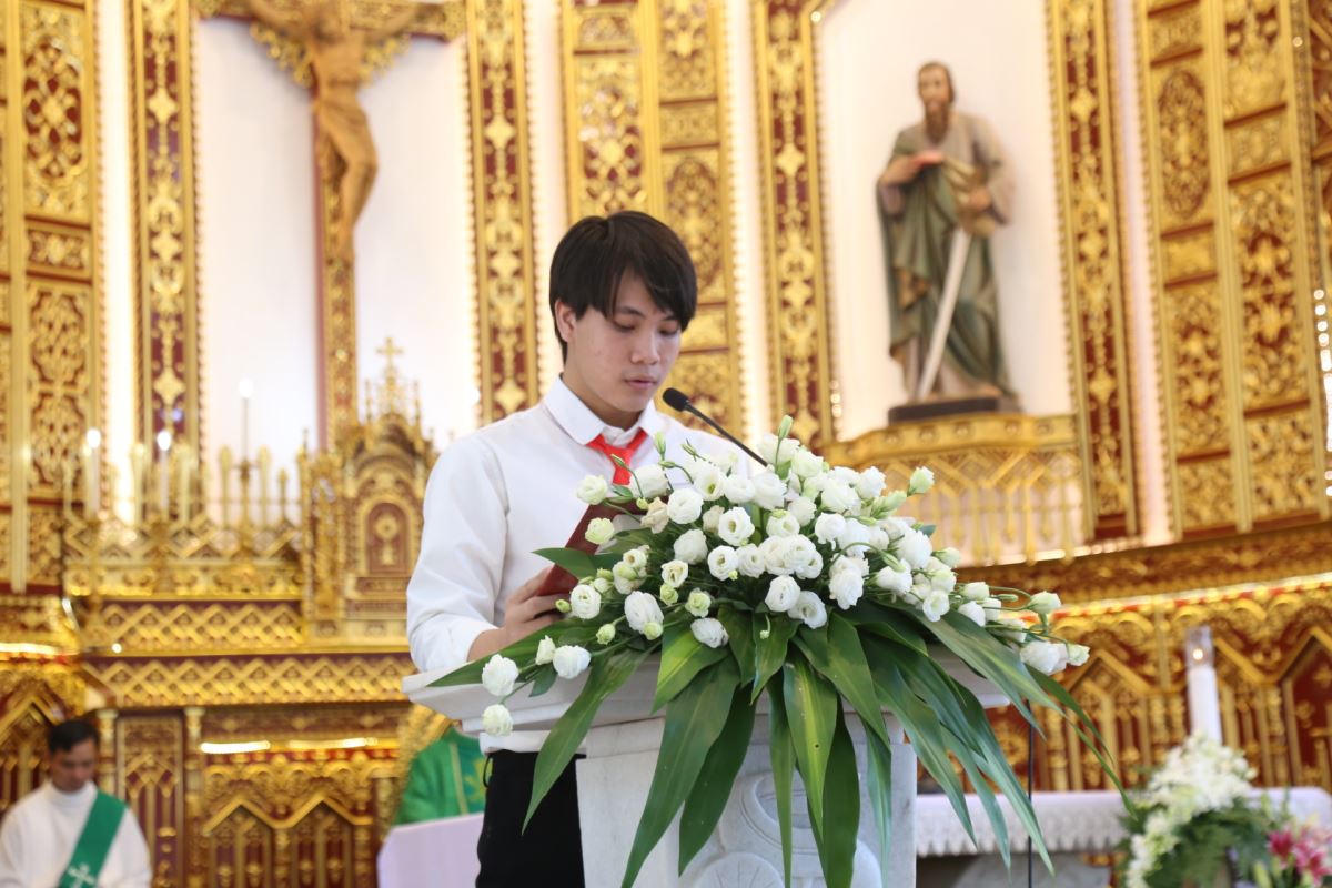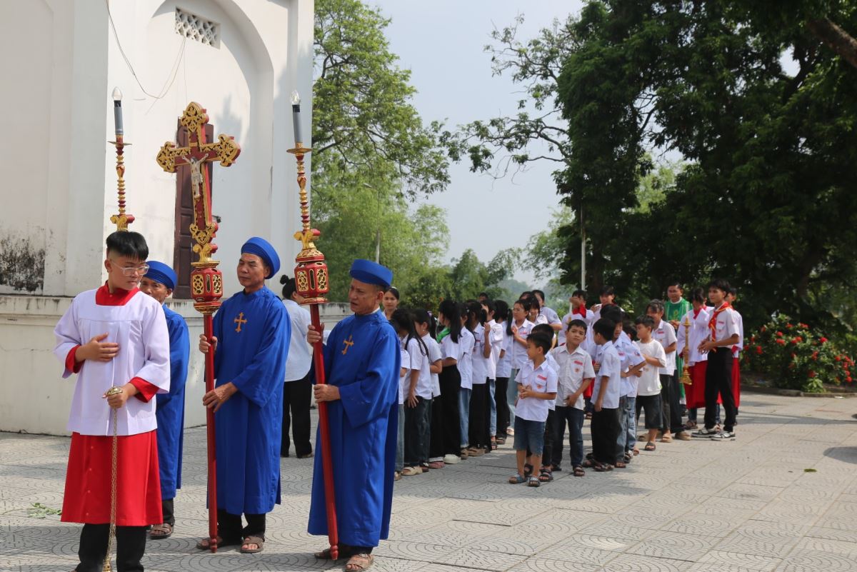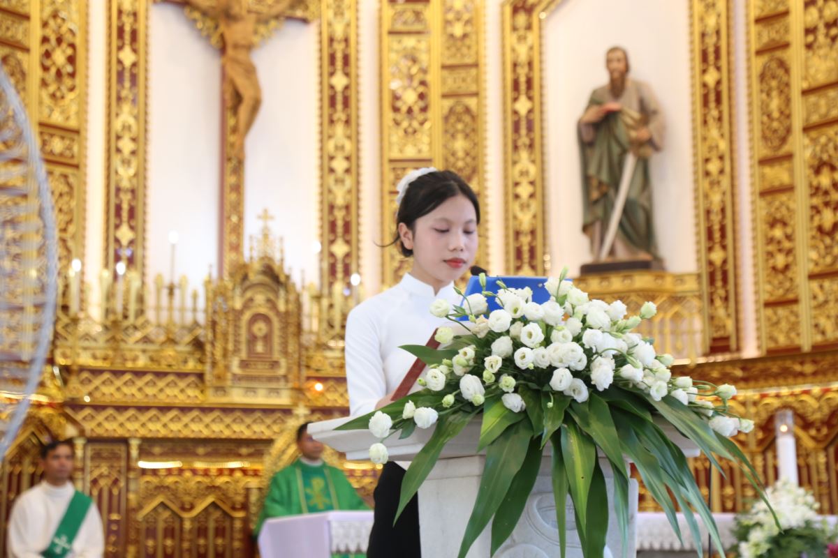 Ngay sau đó, lúc 9g45, Thánh lễ Chúa Nhật XXVIII Thường niên – Năm C được cử hành cách long trọng do Cha xứ Giuse chủ tế. Tham dự Thánh lễ có thầy phó tế Giuse Nguyễn Văn Thưởng, quý dì Mến Thánh Giá Hưng Hóa tại Hiền Quan cùng đông đảo bà con giáo dân trong giáo xứ.