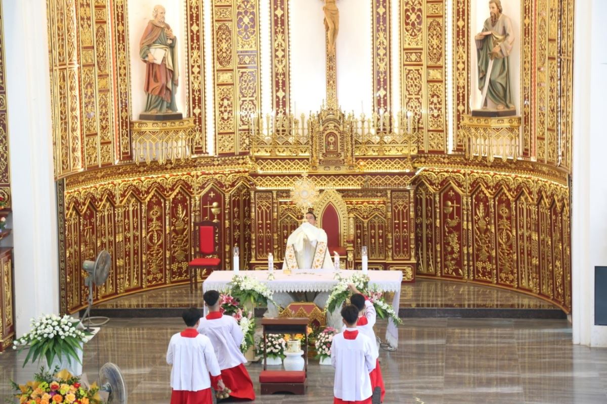 Đúng 5g30 sáng, Thầy phó tế Giuse Nguyễn Văn Thưởng đã đặt Mình Thánh Chúa khai mạc ngày chầu. Dù bắt đầu từ sớm, nhưng đông đảo bà con giáo dân đã hiện diện để cùng dâng lời chúc tụng, tôn vinh và cảm tạ Chúa Giêsu Thánh Thể.